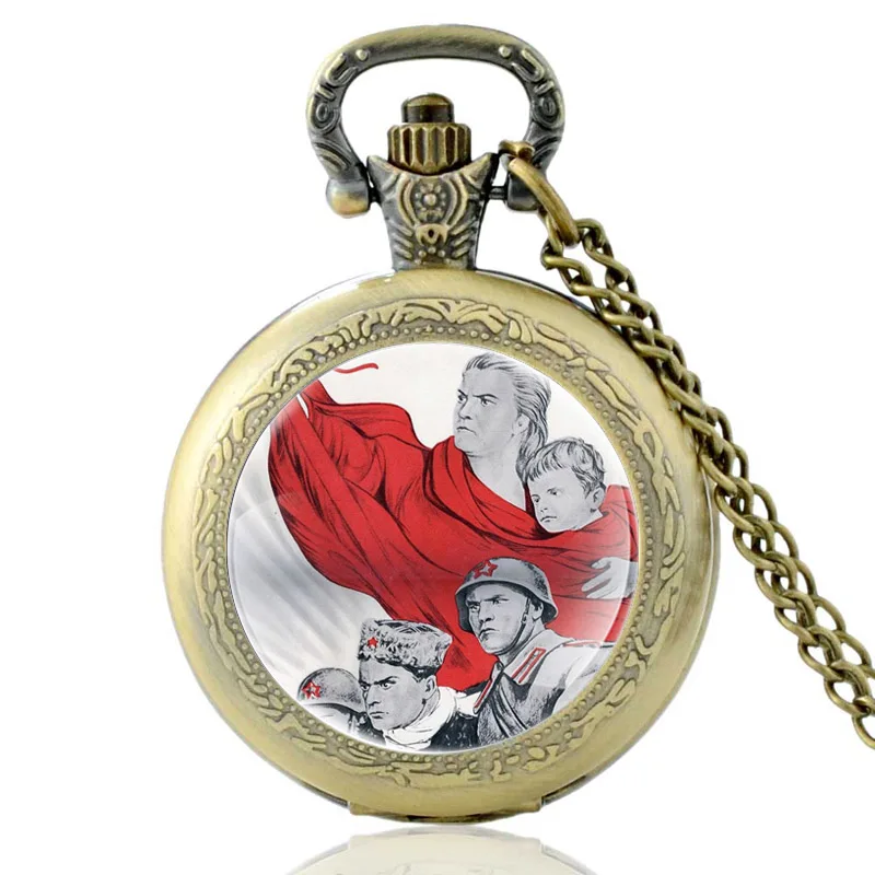 Классические часы CCCP на заказ, дизайн ЗОВЕТ, винтажные кварцевые карманные часы для мужчин и женщин, очаровательная подвеска, ожерелье, часы