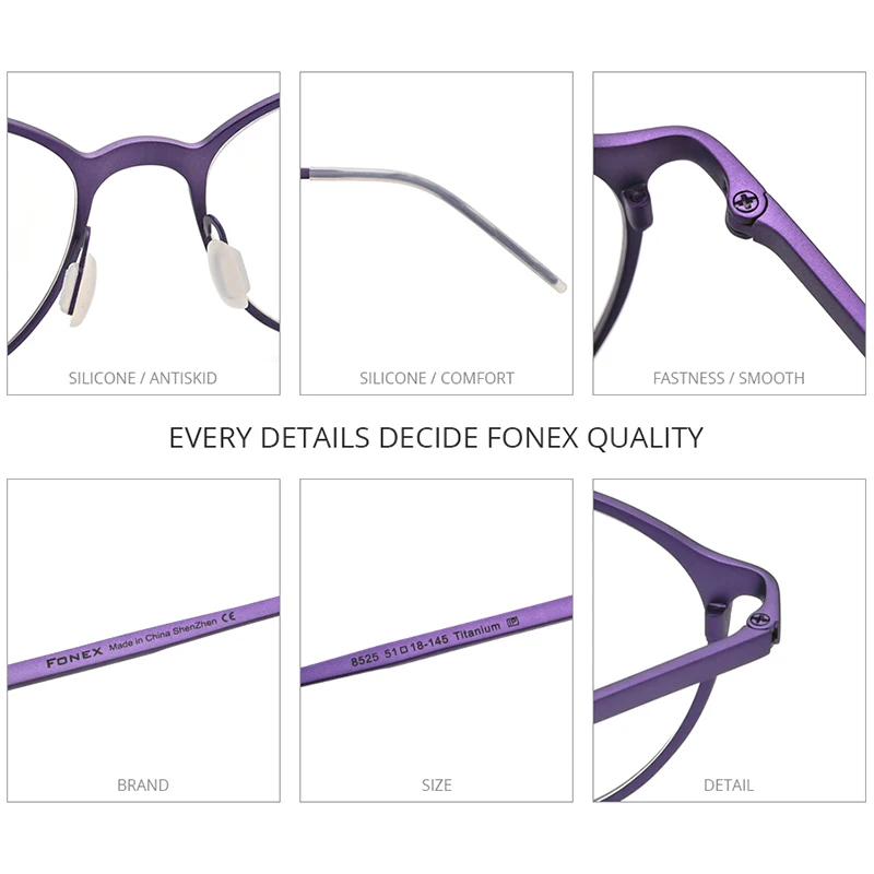 FONEX Очки мужские и женские из чистого титана в ретро-стиле, F85675