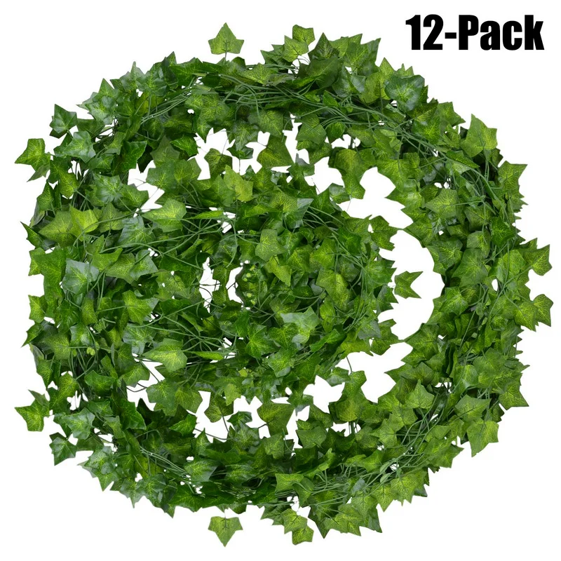 Искусственные зеленые листья плюща, высота 2 м, 12 шт.