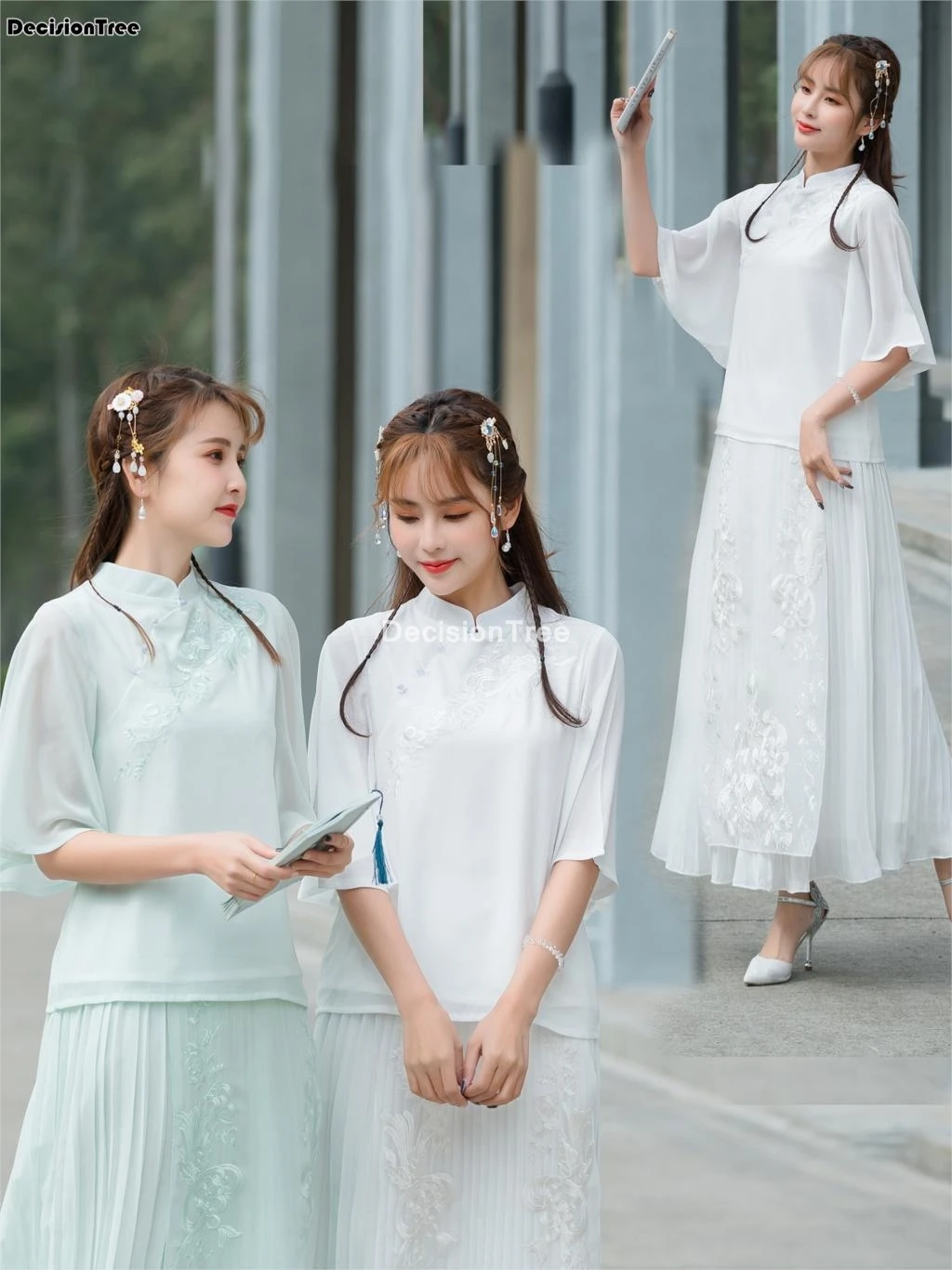 2021 блузка костюм в китайском стиле Мягкая топы Ципао camisa Китай mujer hanfu рубашка блузка cheongsam шифоновая блузка Восточное Ципао