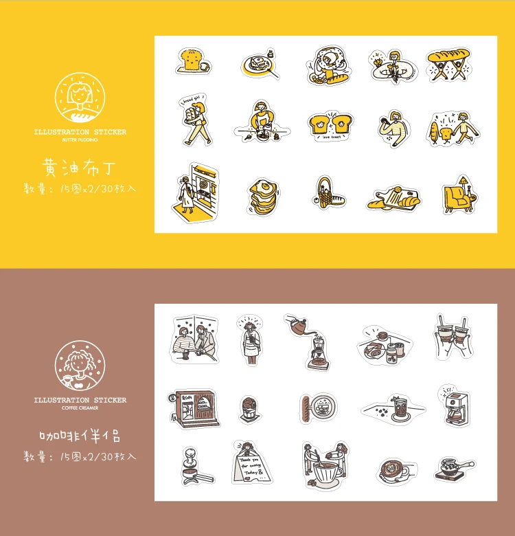 30 шт.упак. Кофе соды Стикеры Набор Kawaii милые Детская игрушка Сделай Сам Скрапбукинг планировщик деко этикетка школьные канцелярские принадлежности