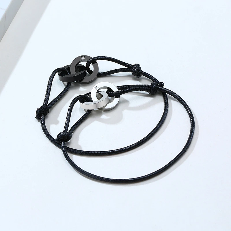 Двойной блокирующий мужской браслет из черного шнура подарок для парня