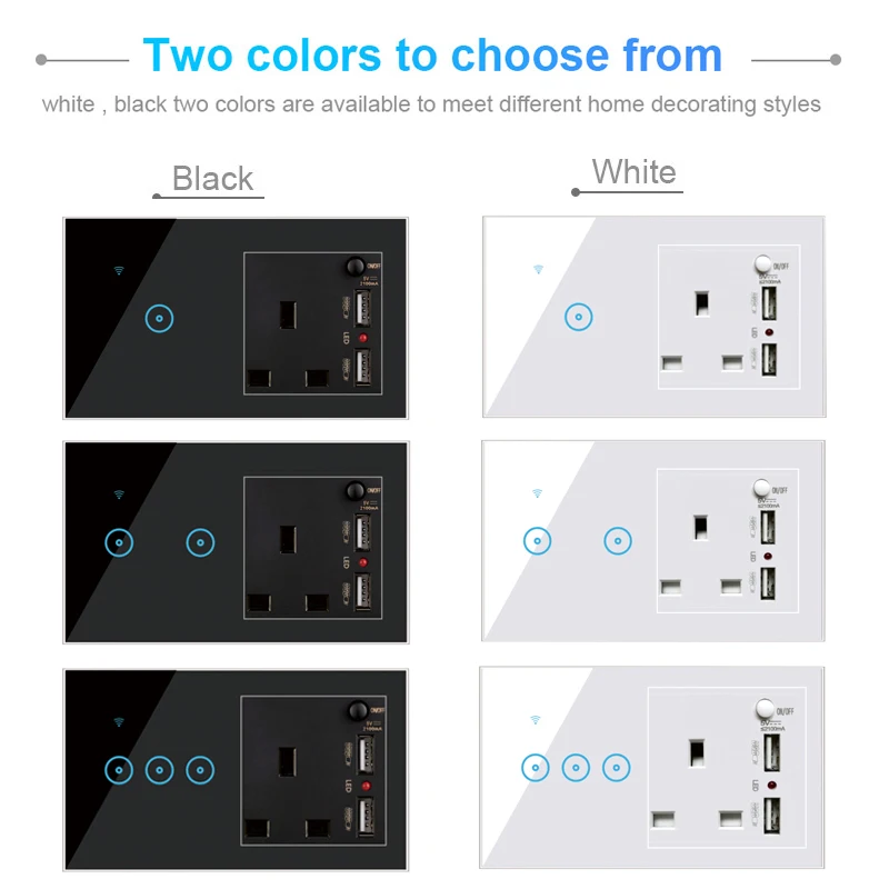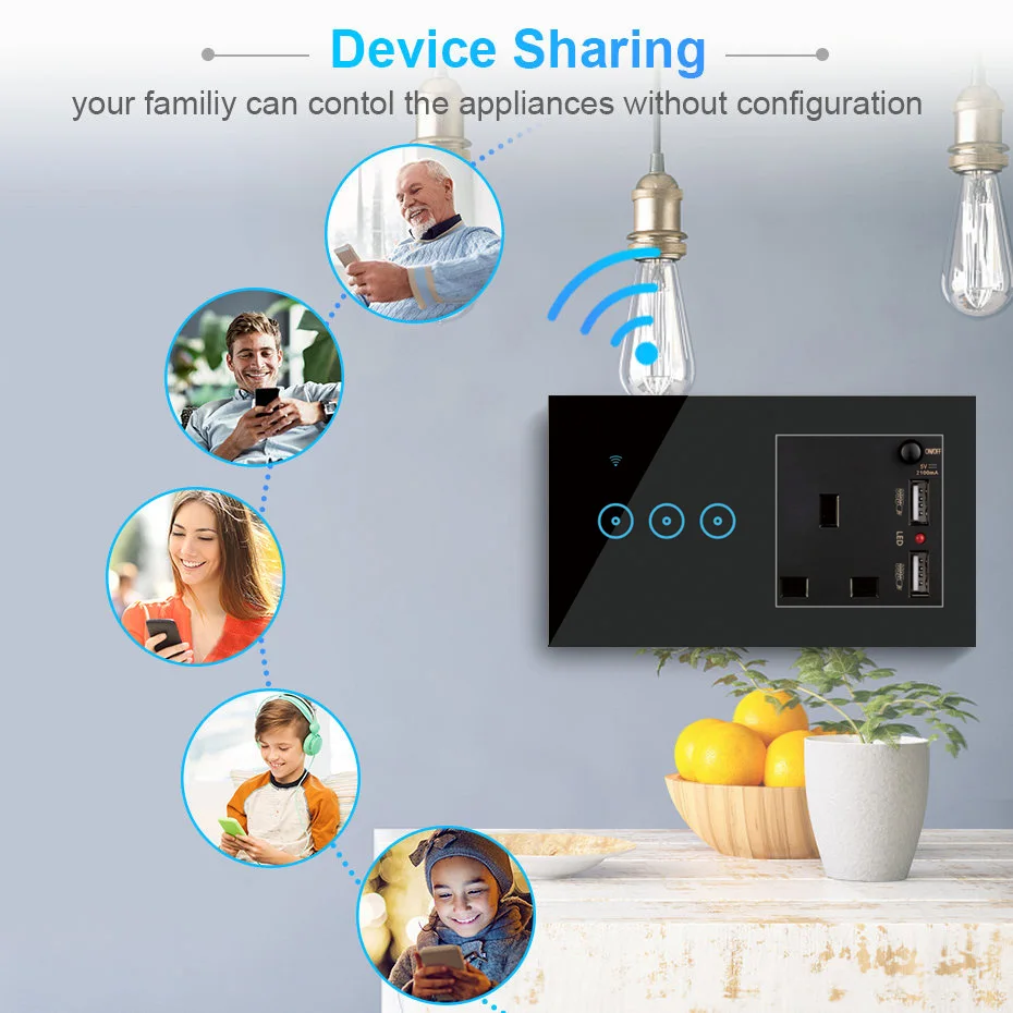 Умный выключатель с 2 USB-портами и поддержкой Wi-Fi, 2200 Вт