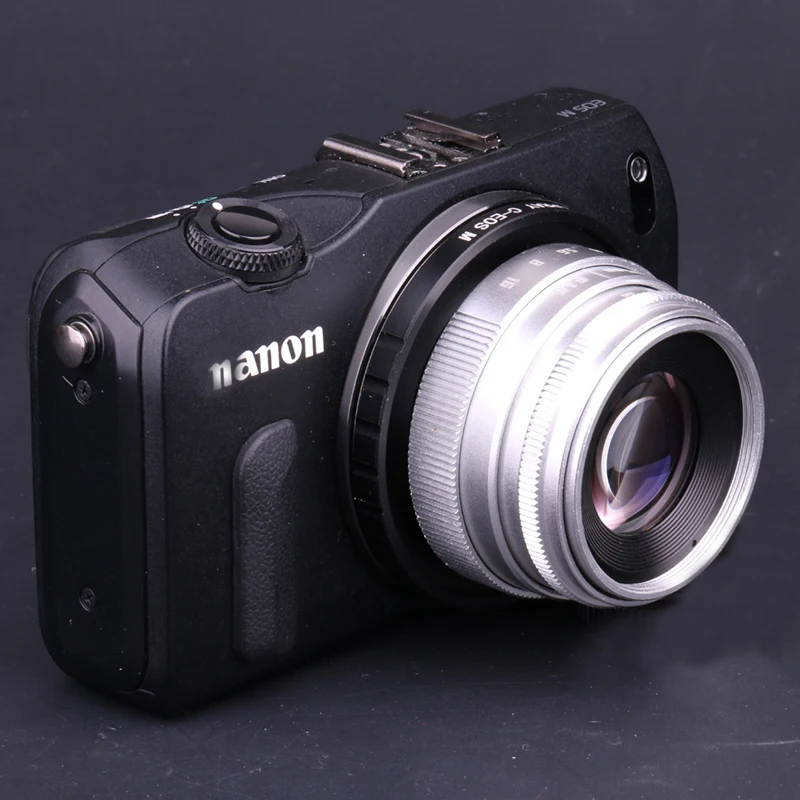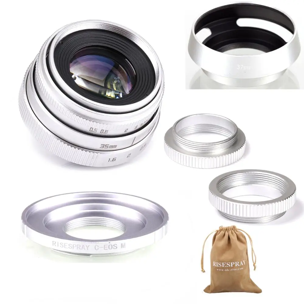 Серебристый мини-объектив 35 мм f1,6 APS-C CCTV + переходное кольцо + 2 макрокольца + бленда объектива для Canon EF-M EOSM Mirroless Camera M1M3M5