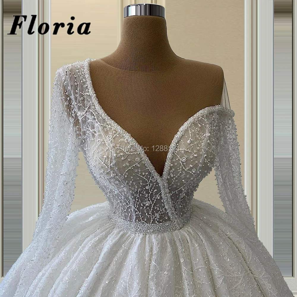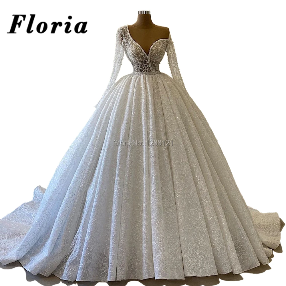 Мусульманское свадебное платье с одним рукавом от кутюр длинное платье невесты с Бисером Дубай 2020 пышное свадебное платье с v-образным вырезом De Mariee