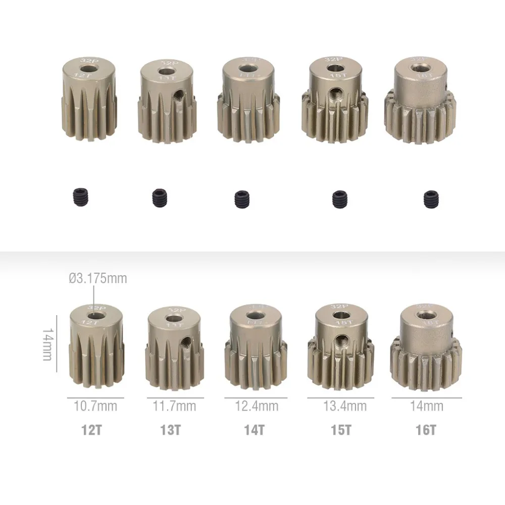 Мотор-Шестерня 32DP, 3,175 мм, 12T, 13T, 14T, 15T, 16T, 17T, 18T, 19T, 20T, для 110 радиоуправляемых машинок, грузовиков, матовый бесщеточный мотор