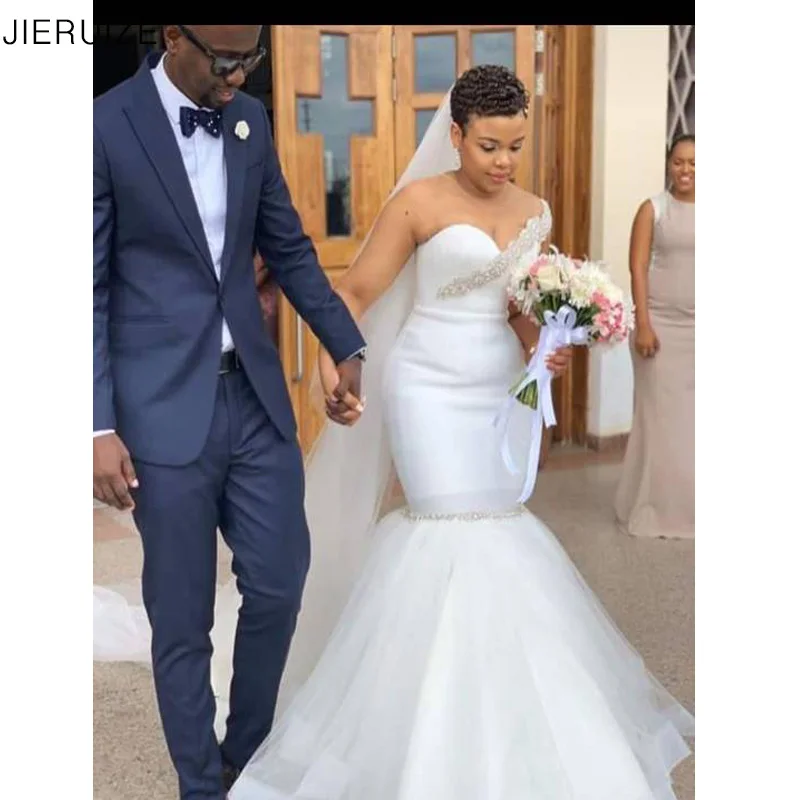 Белое свадебное платье JIERUIZE с одним открытым плечом, свадебные платья с кристаллами, свадебные платья с завязкой на спине, свадебное платье
