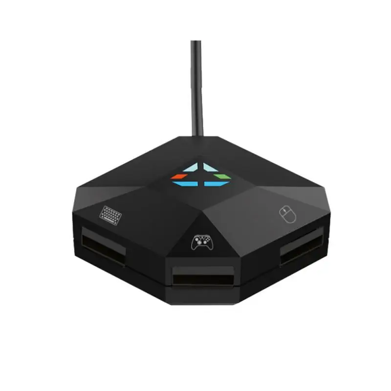 Кабель USB подключен к интерфейсу USB игровой консоли, и индикатор «белый светильник» хоста подключения включен; Проводной геймпад подключен к интерфейсу USB 2, И индикатор «белый светильник» игрового контроллера включен; Или USB интерфейс 3, Индикатор клавиатуры «Красный» включен, а Индикатор мыши «Зеленый» включен.