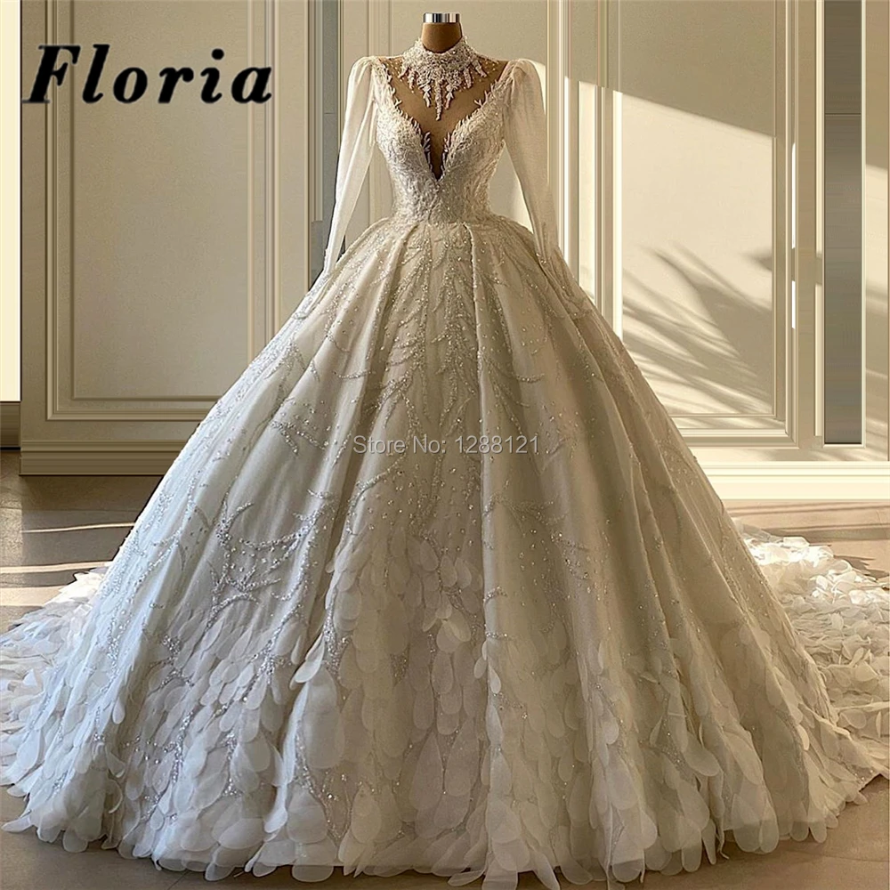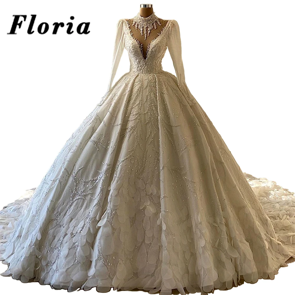 Великолепные Свадебные платья с бисером из Саудовской Аравии Vestido De Noiva 2020 мусульманское бальное платье Дубай платье невесты арабские Свадебные платья с жемчугом