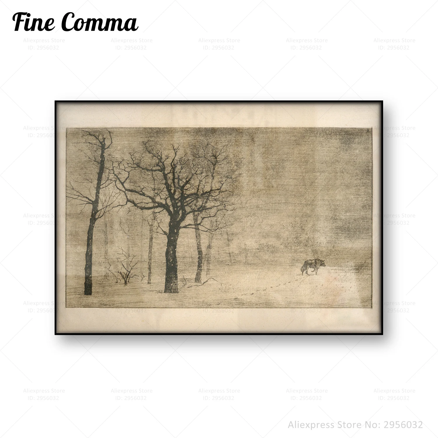 ВИНТАЖНЫЙ ПЛАКАТ Одинокий волк настенное искусство дикая природа печать Волк Рисунок зимний пейзаж античный волк животное картина украшение