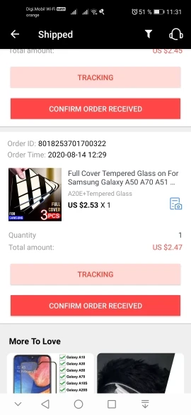 Страна: LT Color: A51 Material: Tempered Glass Доставка: Cainiao Super Economy Global 09.02.2021