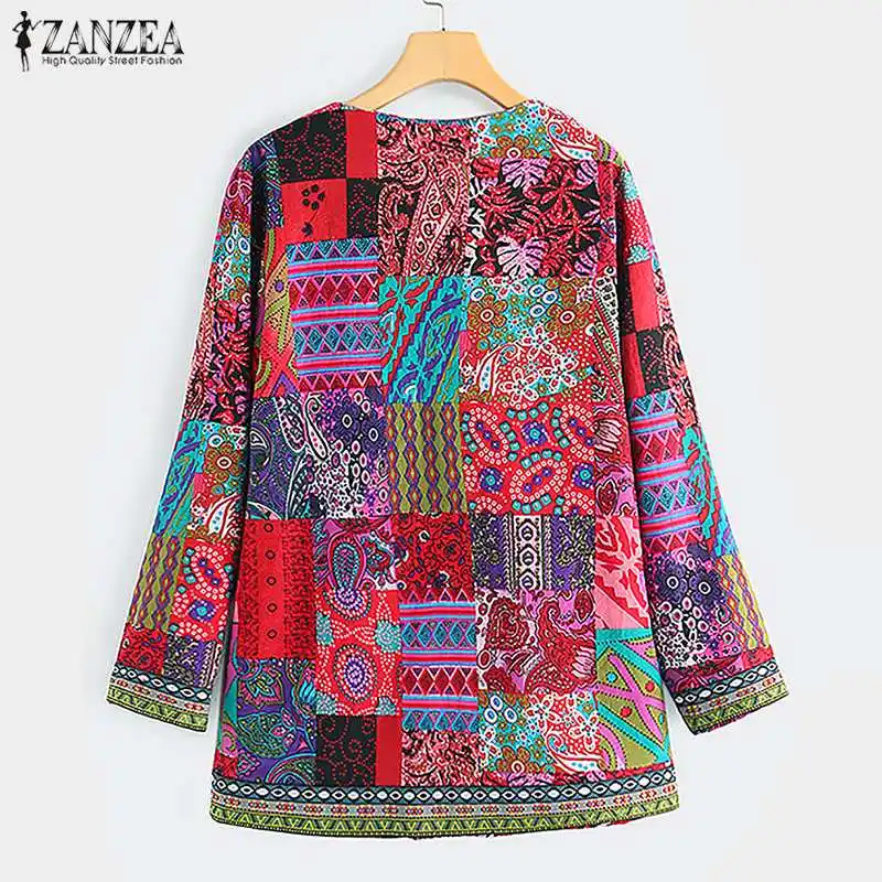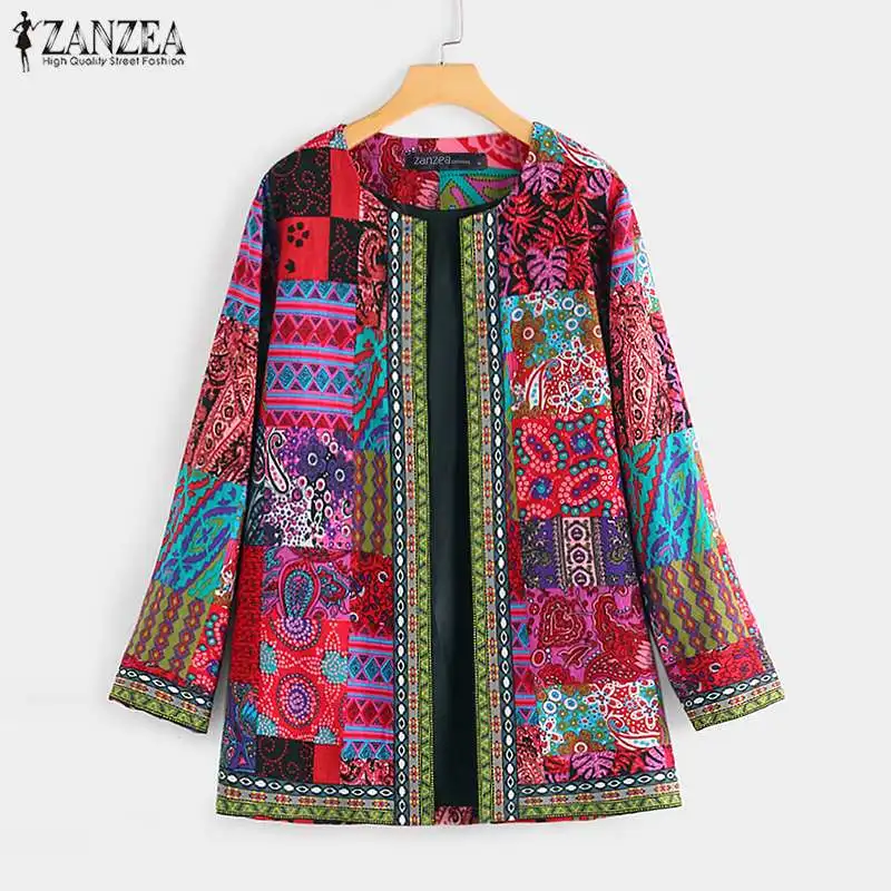 Куртка ZANZEA женская с этническим принтом, тонкая верхняя одежда, свободная повседневная верхняя одежда с длинным рукавом и открытыми вставками, в стиле оверсайз, осень 2021
