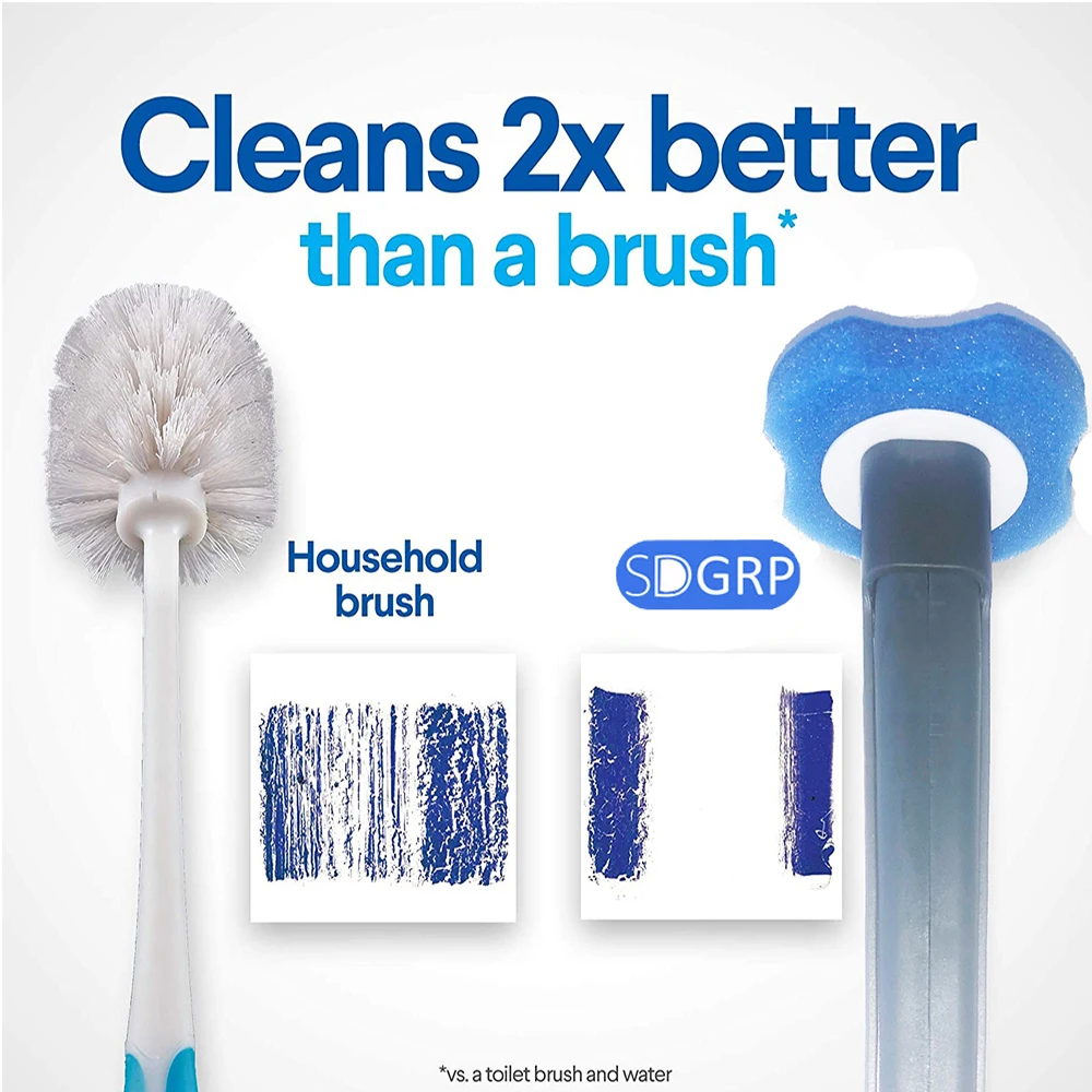 1. Одноразовая щётка для туалета с чистящей щеткой. Нажмите синюю кнопку можно легко заменить, не нужно касаться, легко сэкономить.