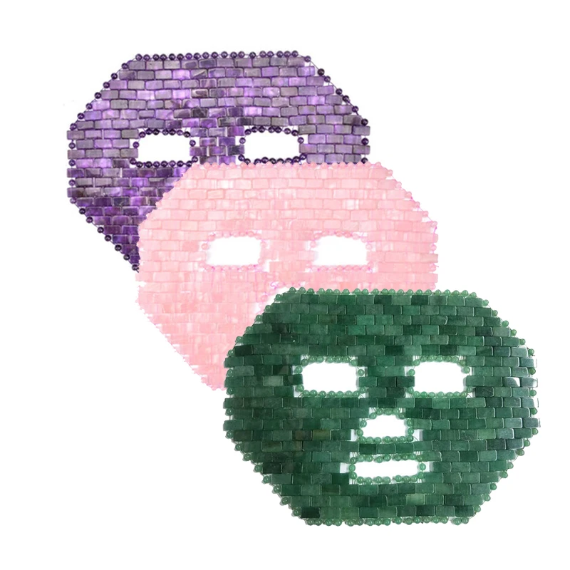 Маска для сна с кристаллами ручной работы, маска для холодной терапии лица с натуральным аметистом, маска для сна из розового кварца, охлаждающий массажер