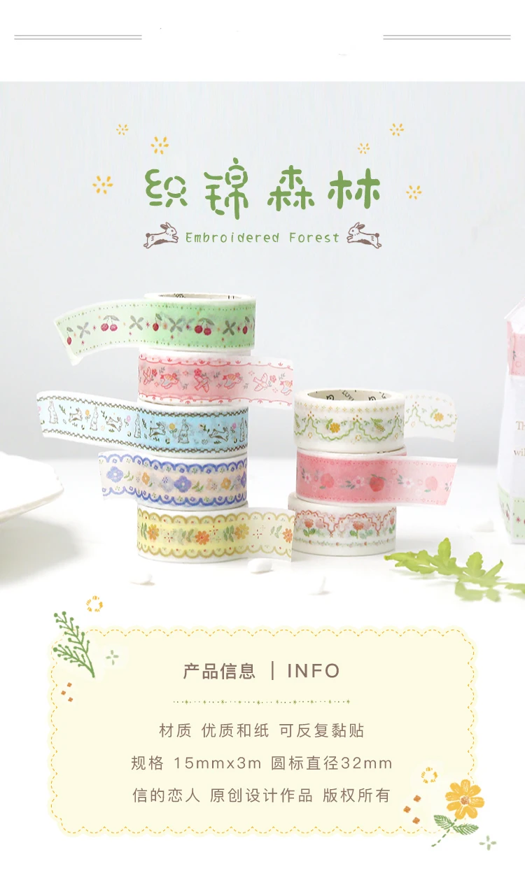 Материал: Бумага васи Узор: 6 видов конструкций Кол-во: Одинарная Размер упаковки: 15 мм * 3 м Название: тканый лес