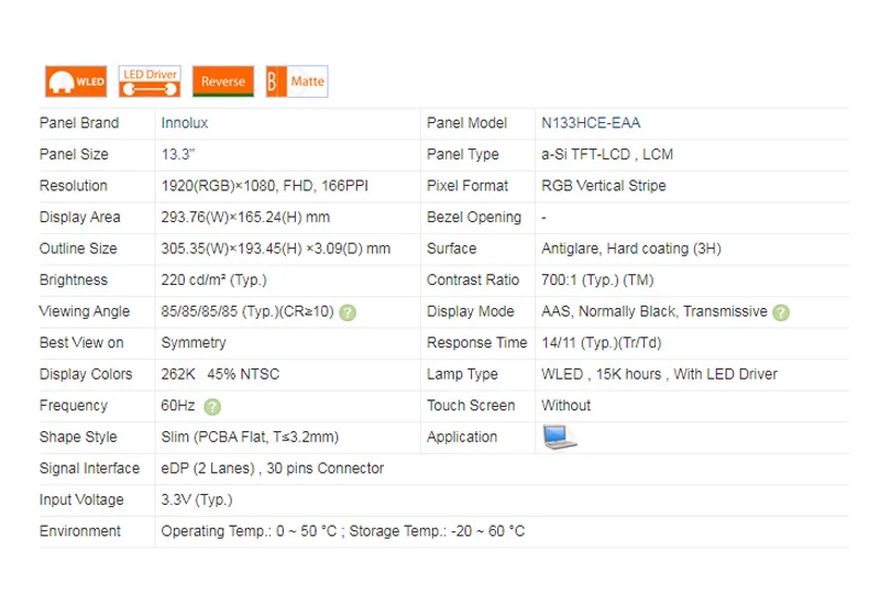N133HCE-EAA Rev.C1 Matte IPS LCD тонкий экран для ноутбука FHD 1920*1080 eDP 30 pins 45% NTSC 13,3 "Для Innolux Panel Brand N133HCE EAA