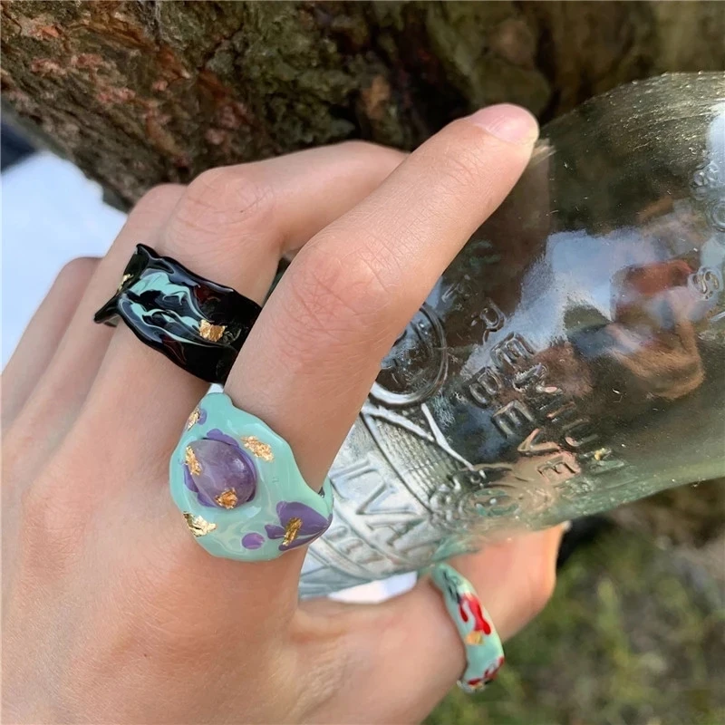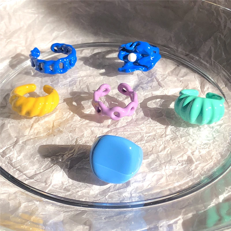 HUANZHI 2020 новые модные разноцветные капающие масляные геометрические кольца ручная роспись несимметричные Открытые Кольца для женщин ювелирные изделия для вечерние Ринок