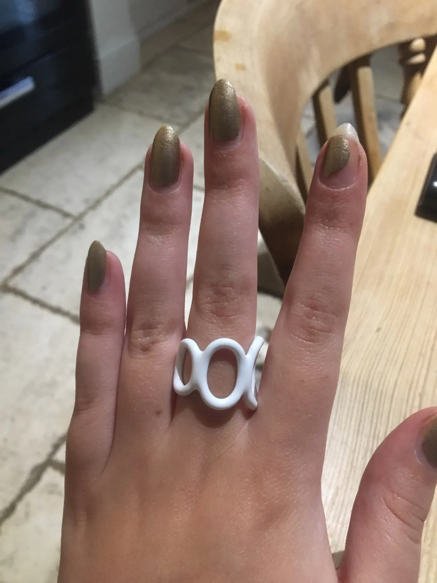 Действительно хорошее качество! Как пластик, но имеет металлическое покрытие на ощупь. На доставку в Великобританию ушло 1 месяц, но его стоит подождать. У меня есть большие пальцы, и они хорошо сидят на кольцах. Не регулируется, как выглядит.