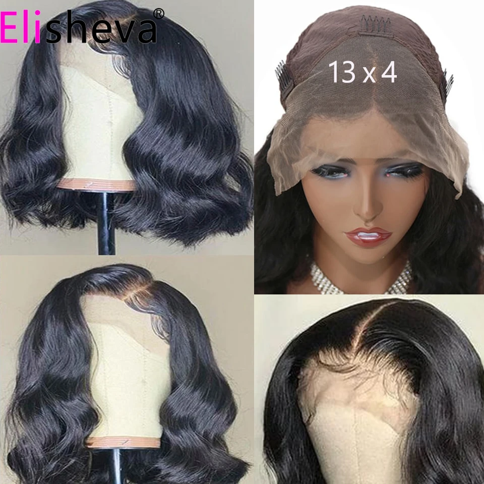 13x4 объемная волна предварительно человеческие волосы полные парики фронта шнурка 4x4 тела с человеческих волос бразильский Реми человеческие волосы короткие Парик, короткая стрижка