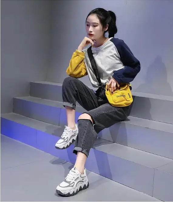 Кроссовки женские вулканизированные, черные, белые, на толстой подошве, 5 см