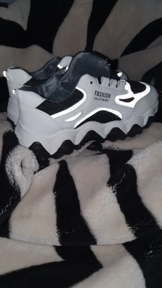 Я люблю их! Они не весят, они очень удобные. Они носят светоотражающие ленты. В зависимости от идеального размера я запросил их один день 11 и получил их на 27. Очень доволен товаром, спасибо. Я следовал за заказом, и он пришел ко мне в идеальном состоянии.