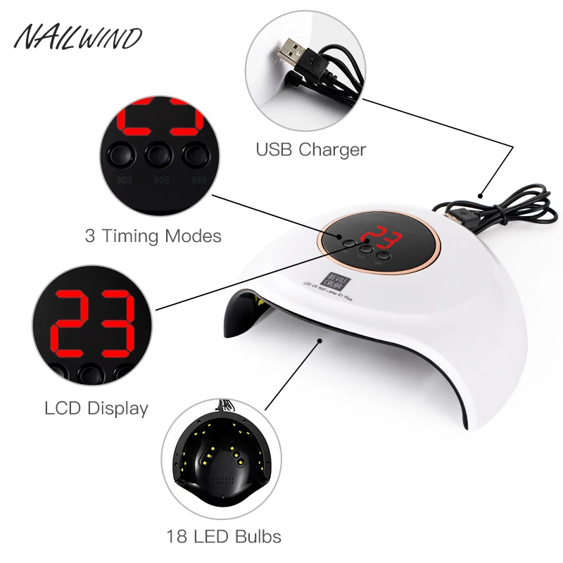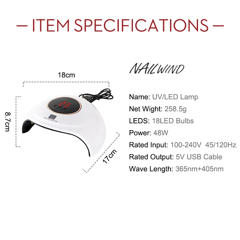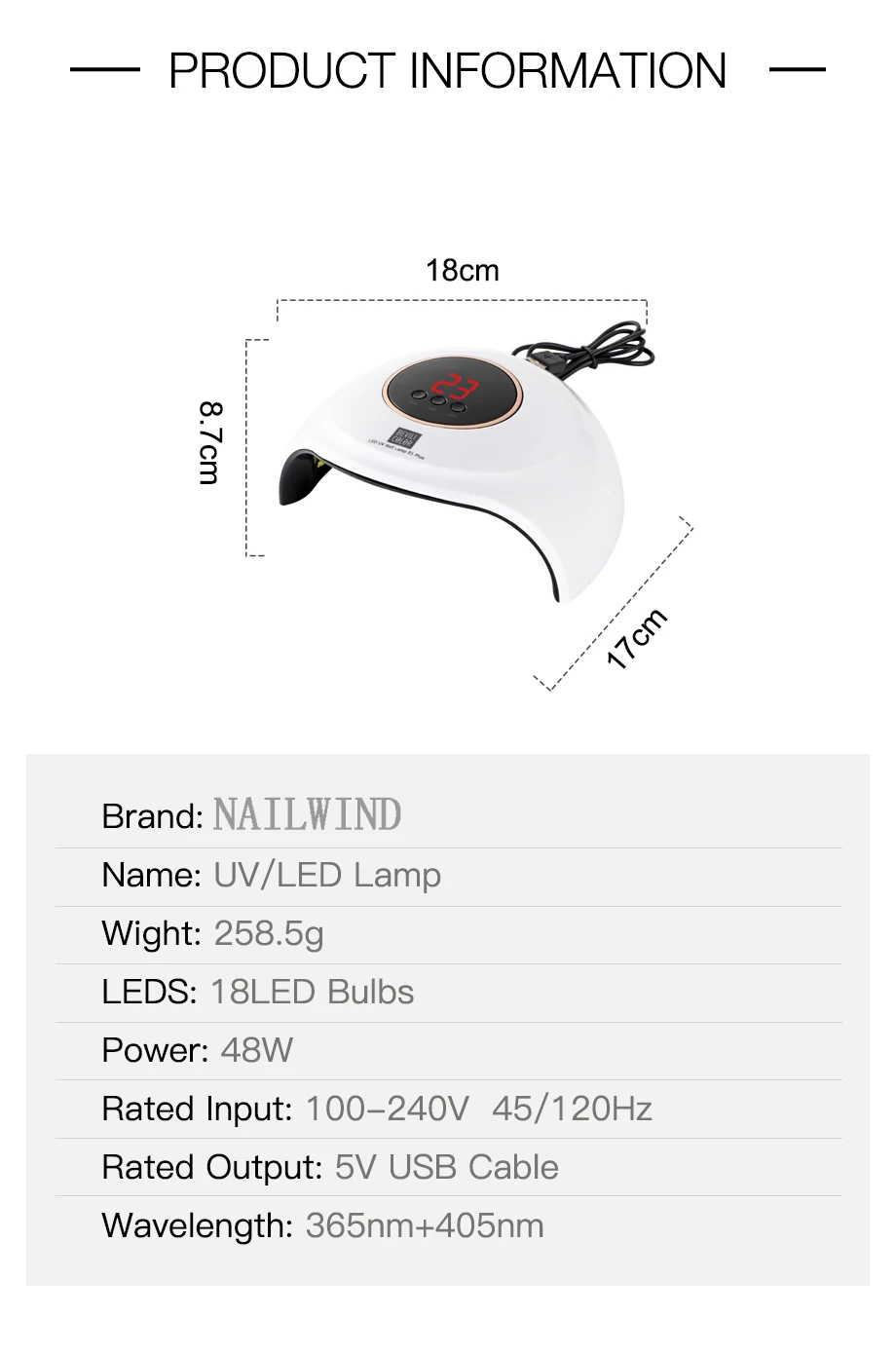 Сушилка для ногтей NAILWIND 48 Вт, светодиодная УФ-лампа для ногтей для отверждения гель-лака, все для дизайна ногтей, Маникюрный Инструмент с дисплеем с таймером на 30 с60 с