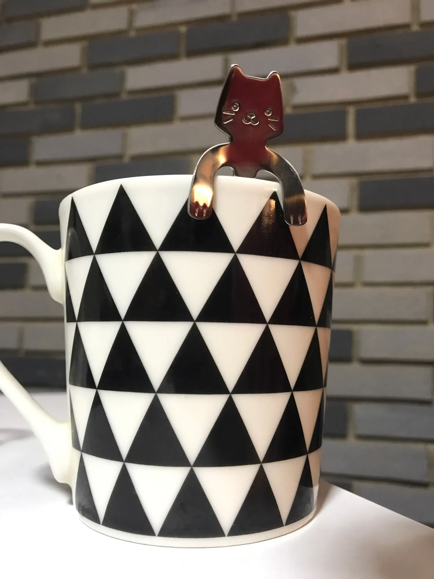 Кофейная мини-ложка из нержавеющей стали 304, с мультяшным котом, с длинной ручкой, столовые приборы, инструменты для питья кофе, кухонный гаджет