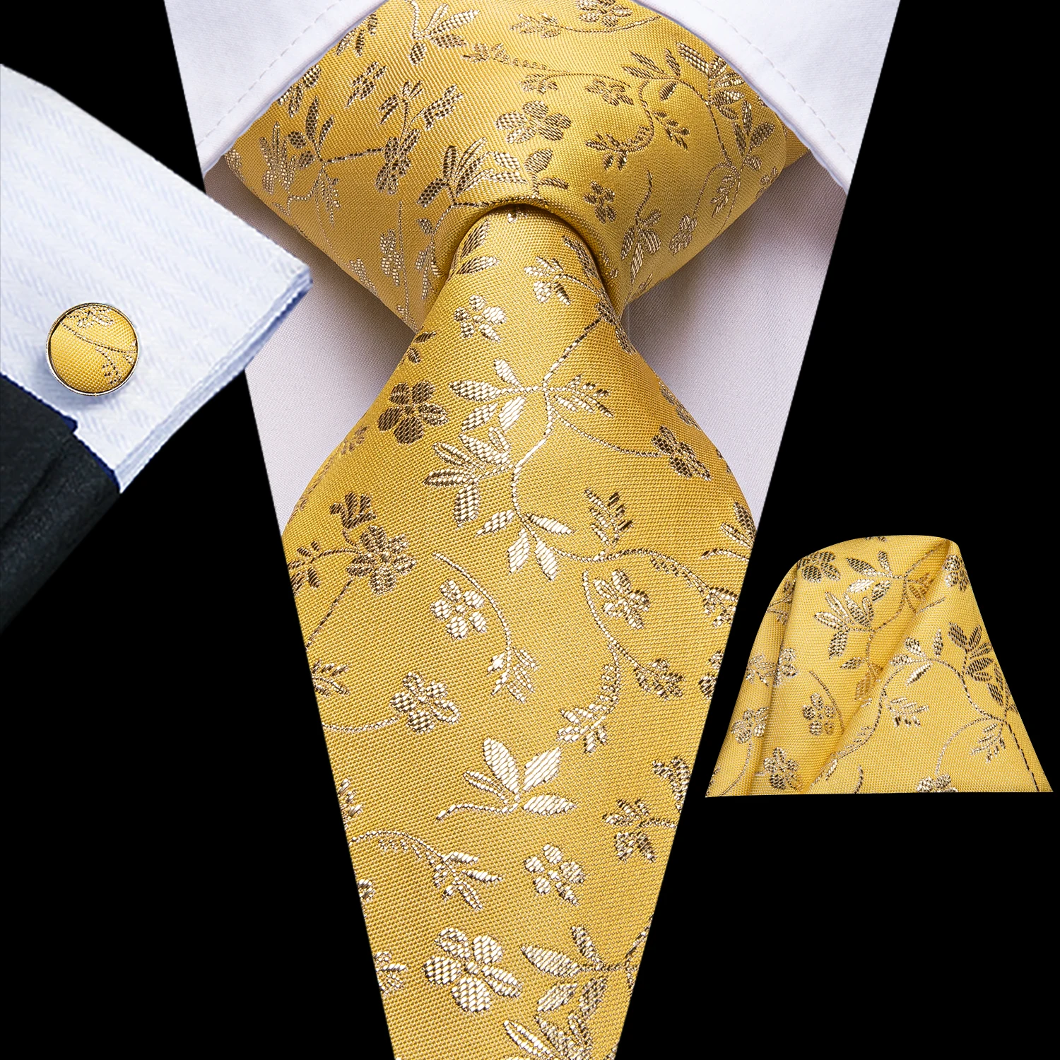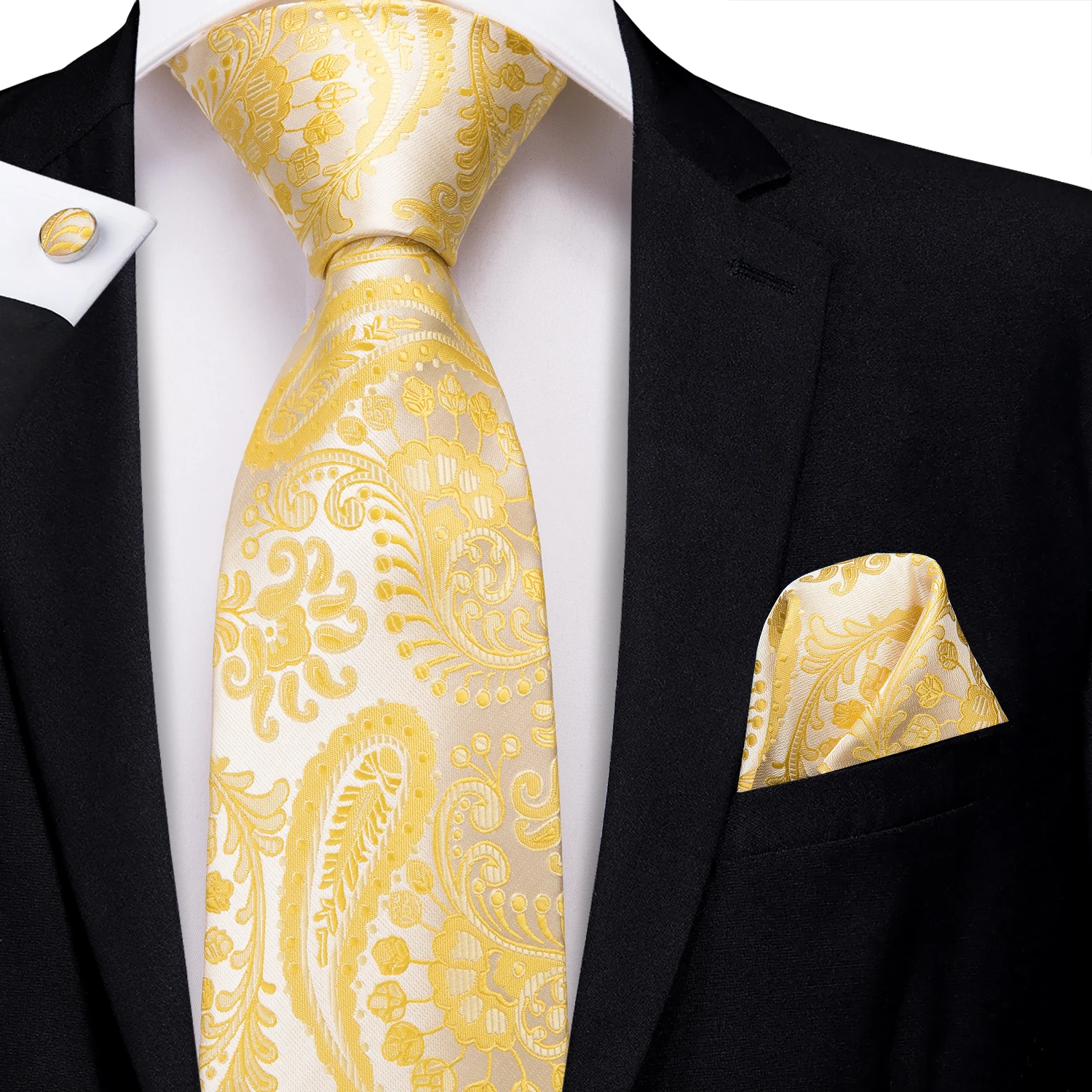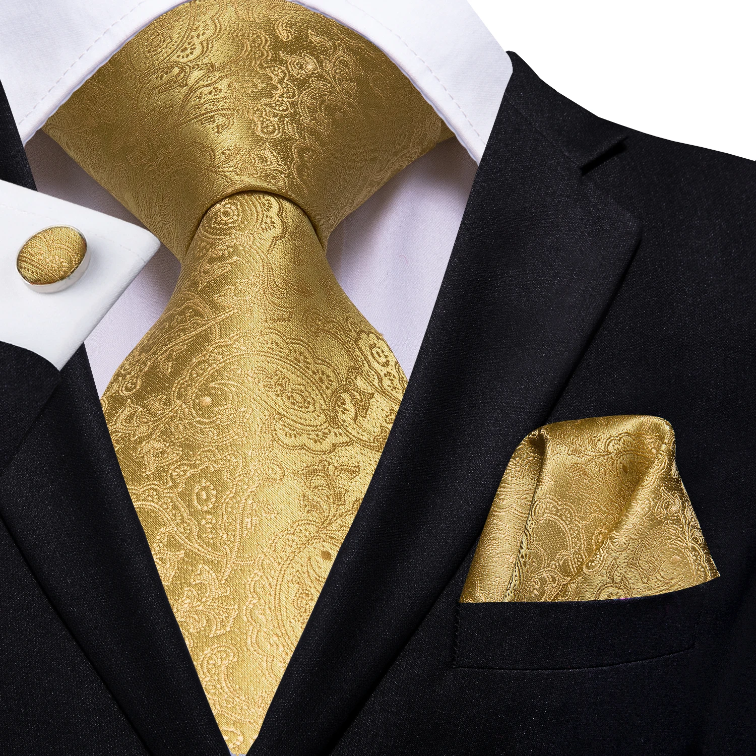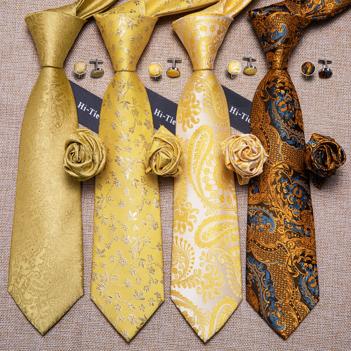 Hi-Tie 8,5 см, желтые золотые мужские галстуки, шелковые жаккардовые однотонные роскошные галстуки для мужчин, набор запонок Hanky, Gravata, подарок для свадьбы, вечеринки
