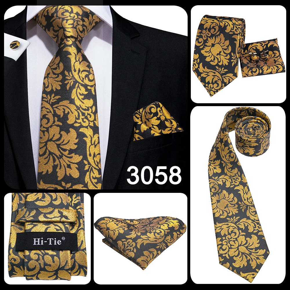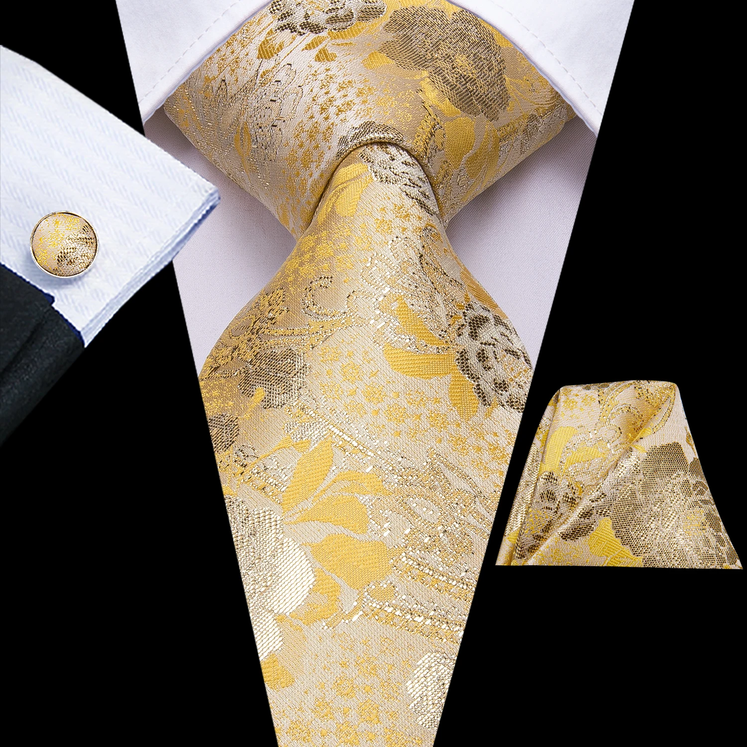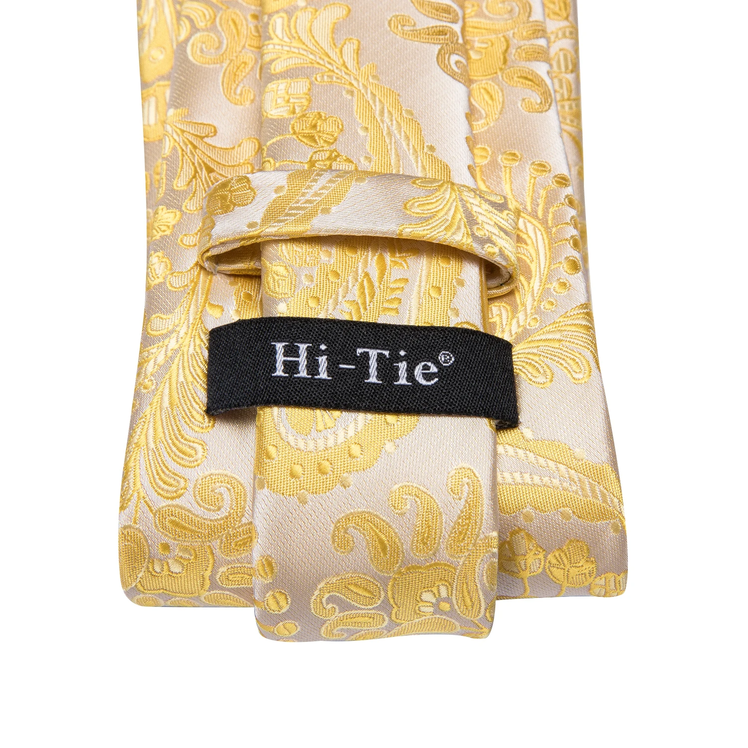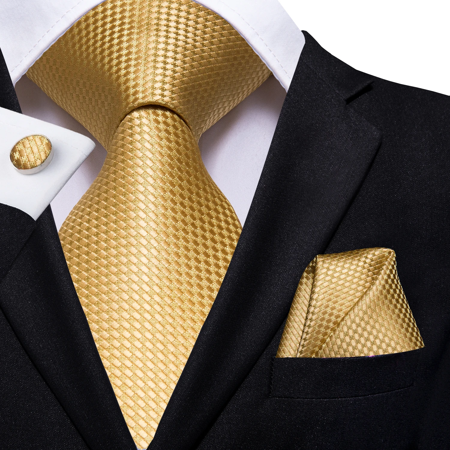 Hi-Tie 8,5 см, желтые золотые мужские галстуки, шелковые жаккардовые однотонные роскошные галстуки для мужчин, набор запонок Hanky, Gravata, подарок для свадьбы, вечеринки