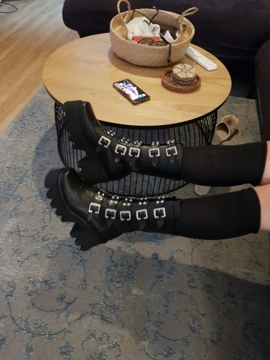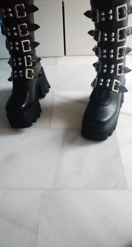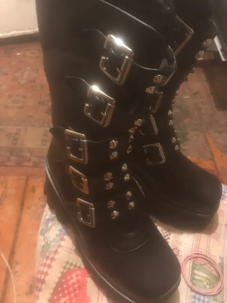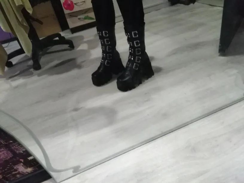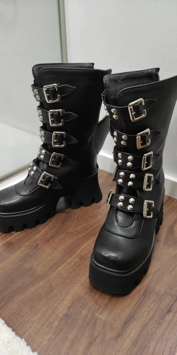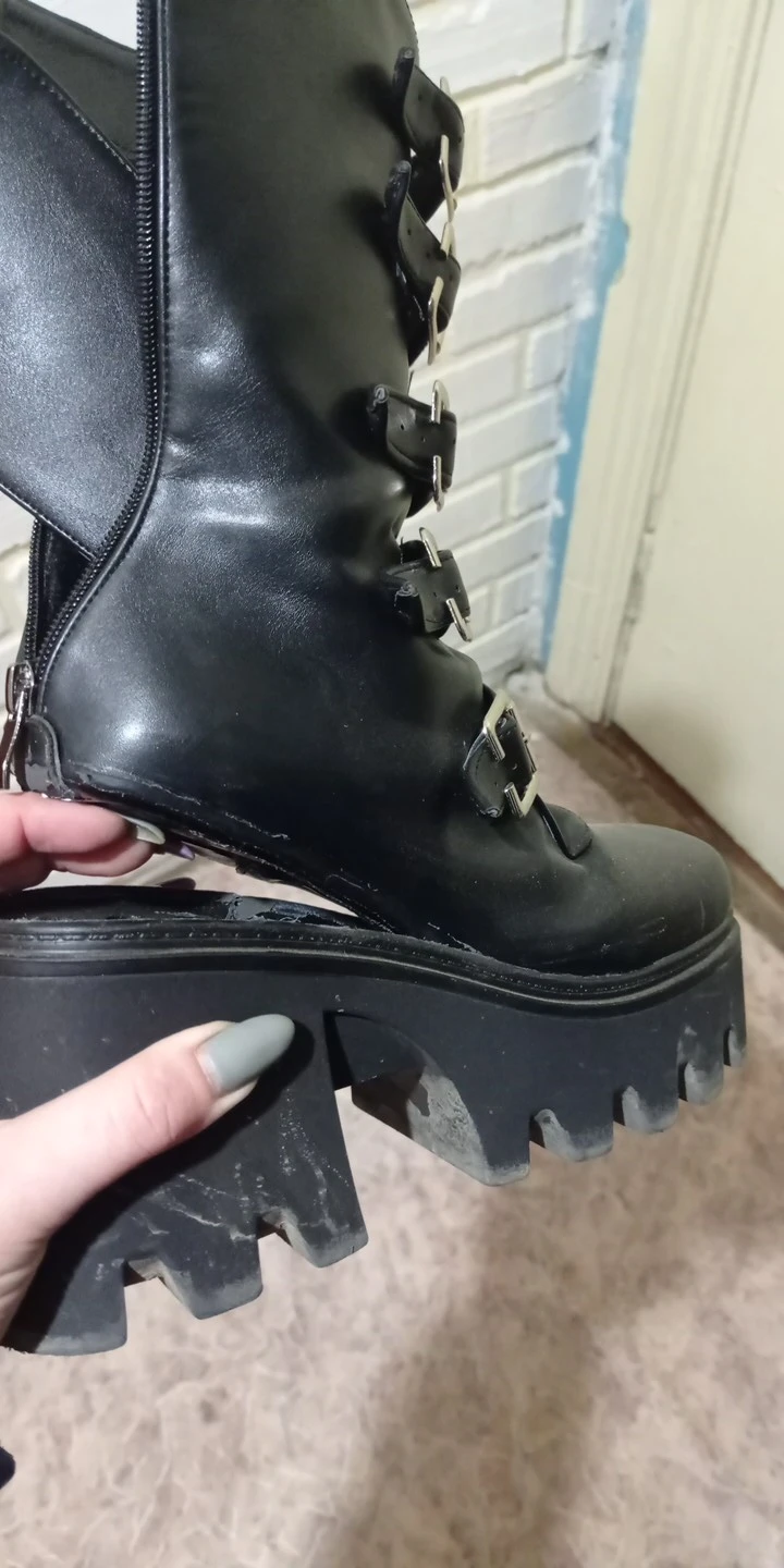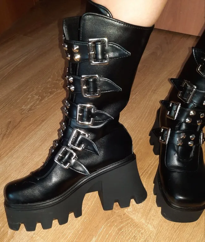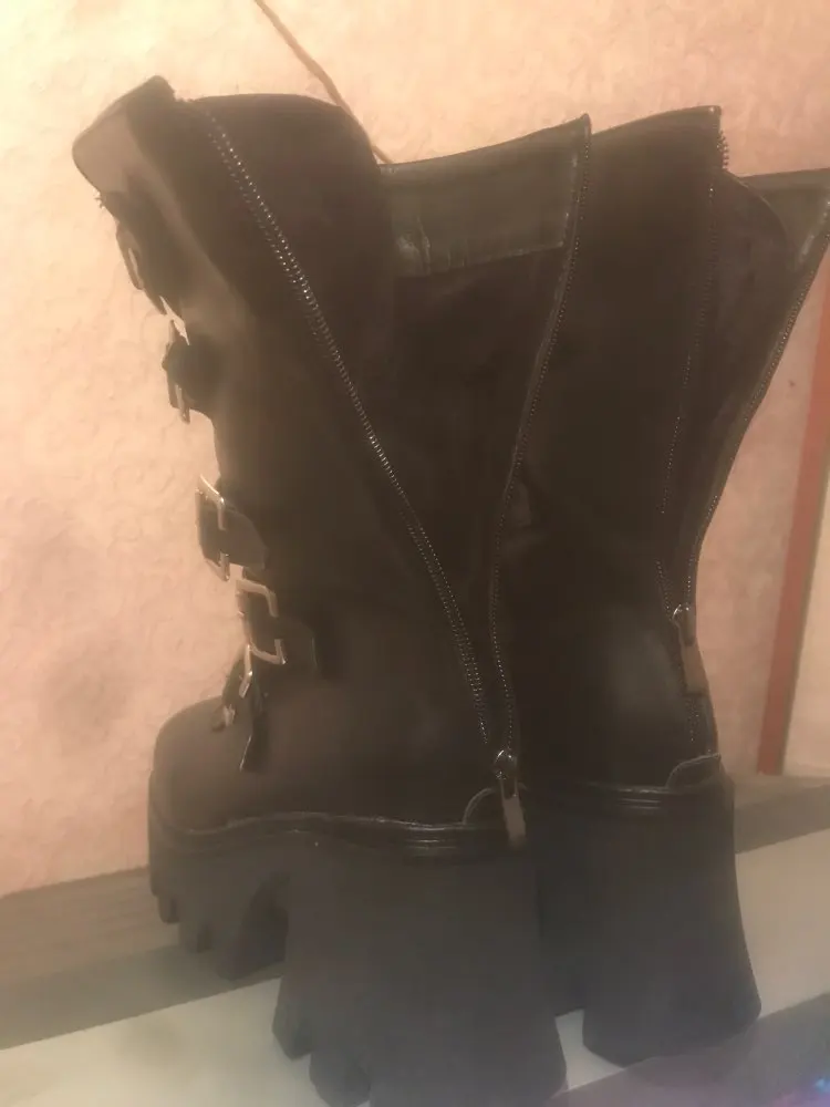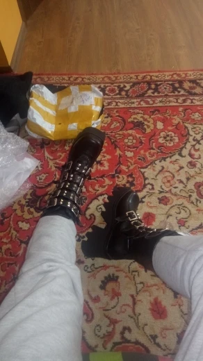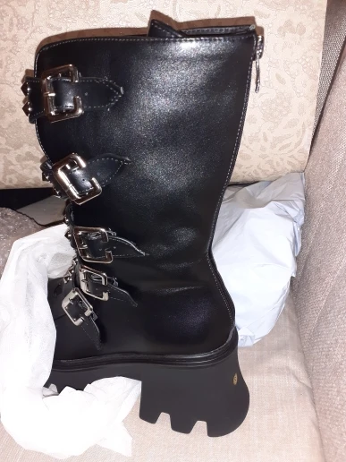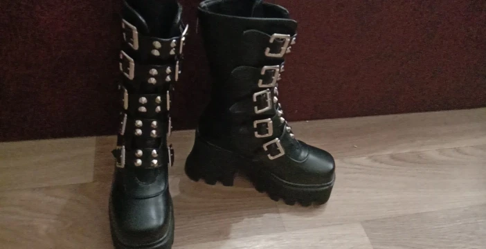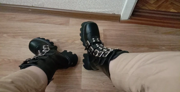 Продавец лапочка, очень быстро отвечает, помог с размером. У обуви есть запах, но быстро выветривается. Платформа кажется очень мягкой, но сапоги удобные, каблук вообще не чувствуется. Идут размер в размер. Ремни регулируются, можно затянуть пряжки сильнее или, наоборот, ослабить. Покупкой оч довольна