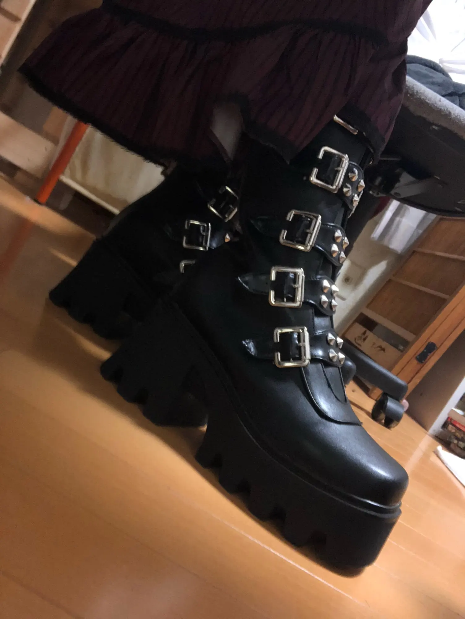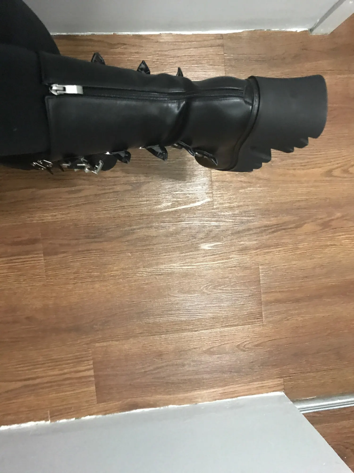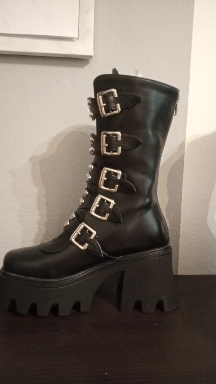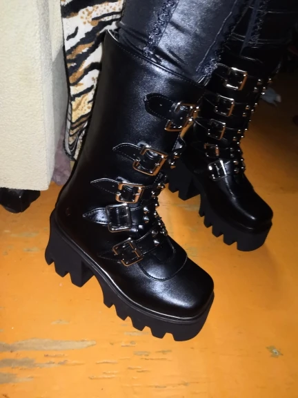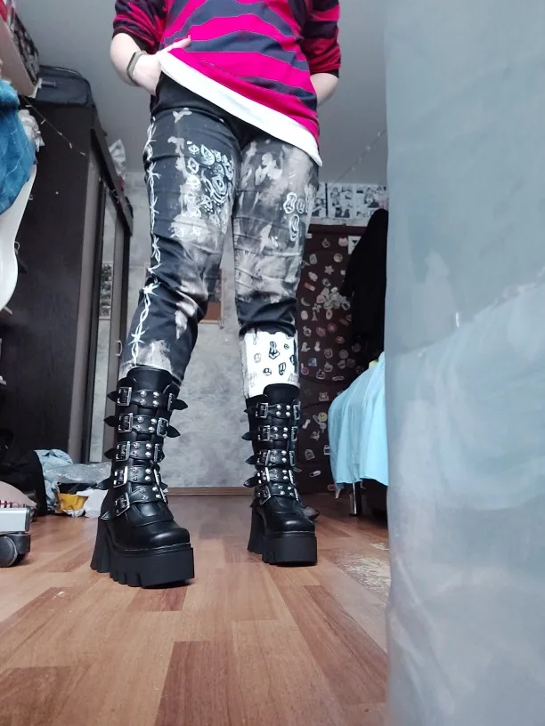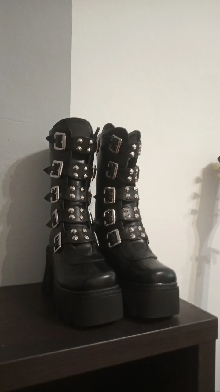 Продавец лапочка, очень быстро отвечает, помог с размером. У обуви есть запах, но быстро выветривается. Платформа кажется очень мягкой, но сапоги удобные, каблук вообще не чувствуется. Идут размер в размер. Ремни регулируются, можно затянуть пряжки сильнее или, наоборот, ослабить. Покупкой оч довольна