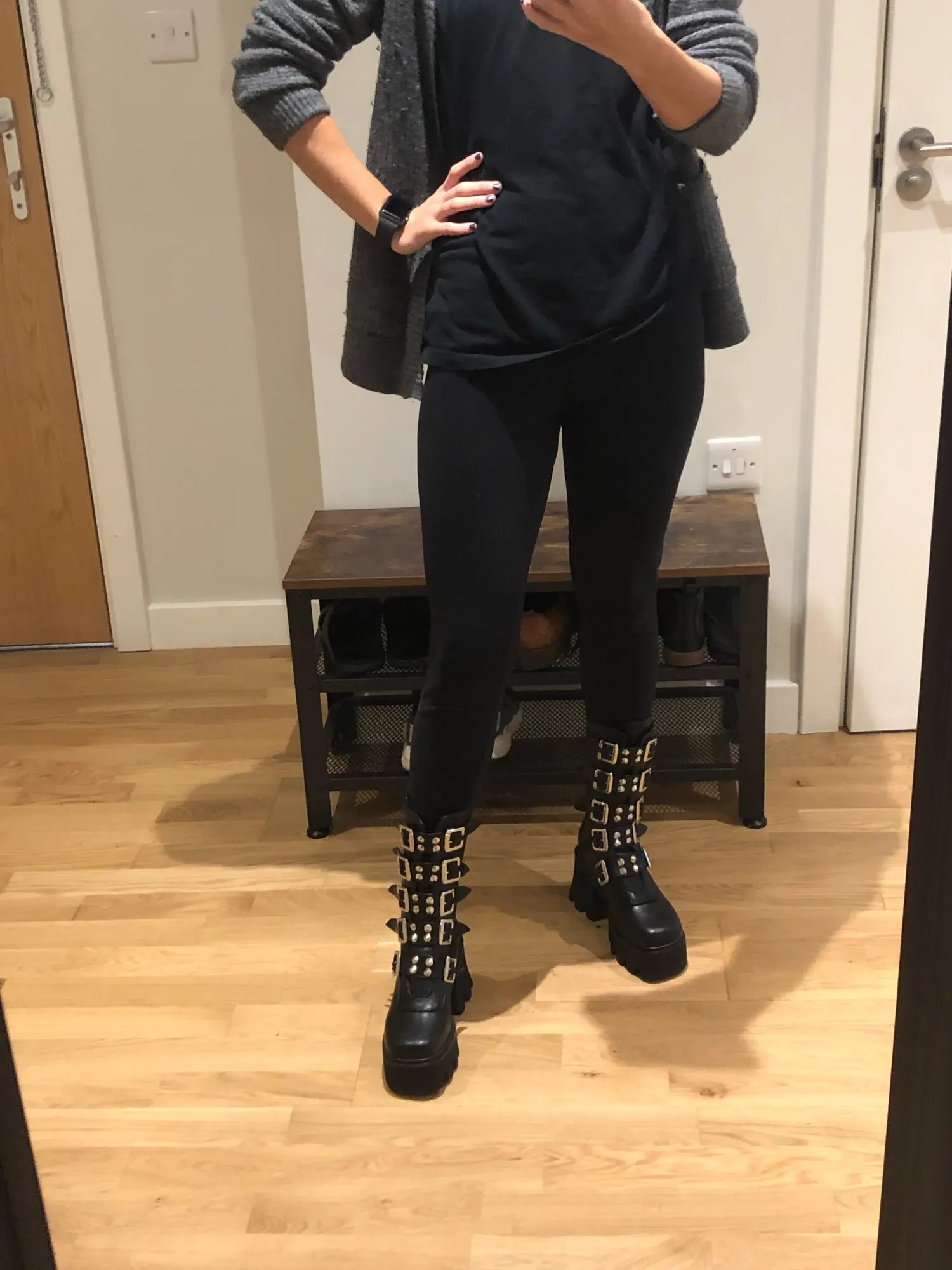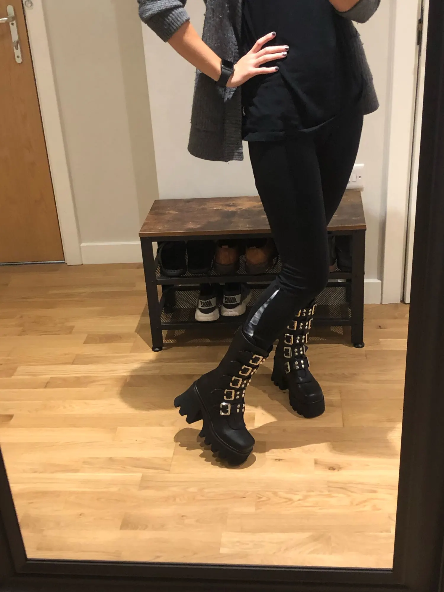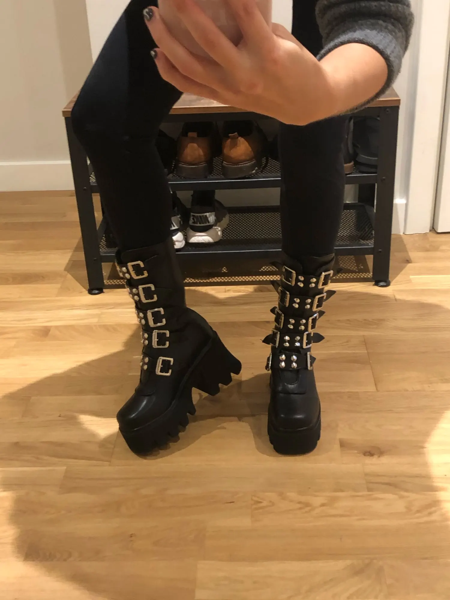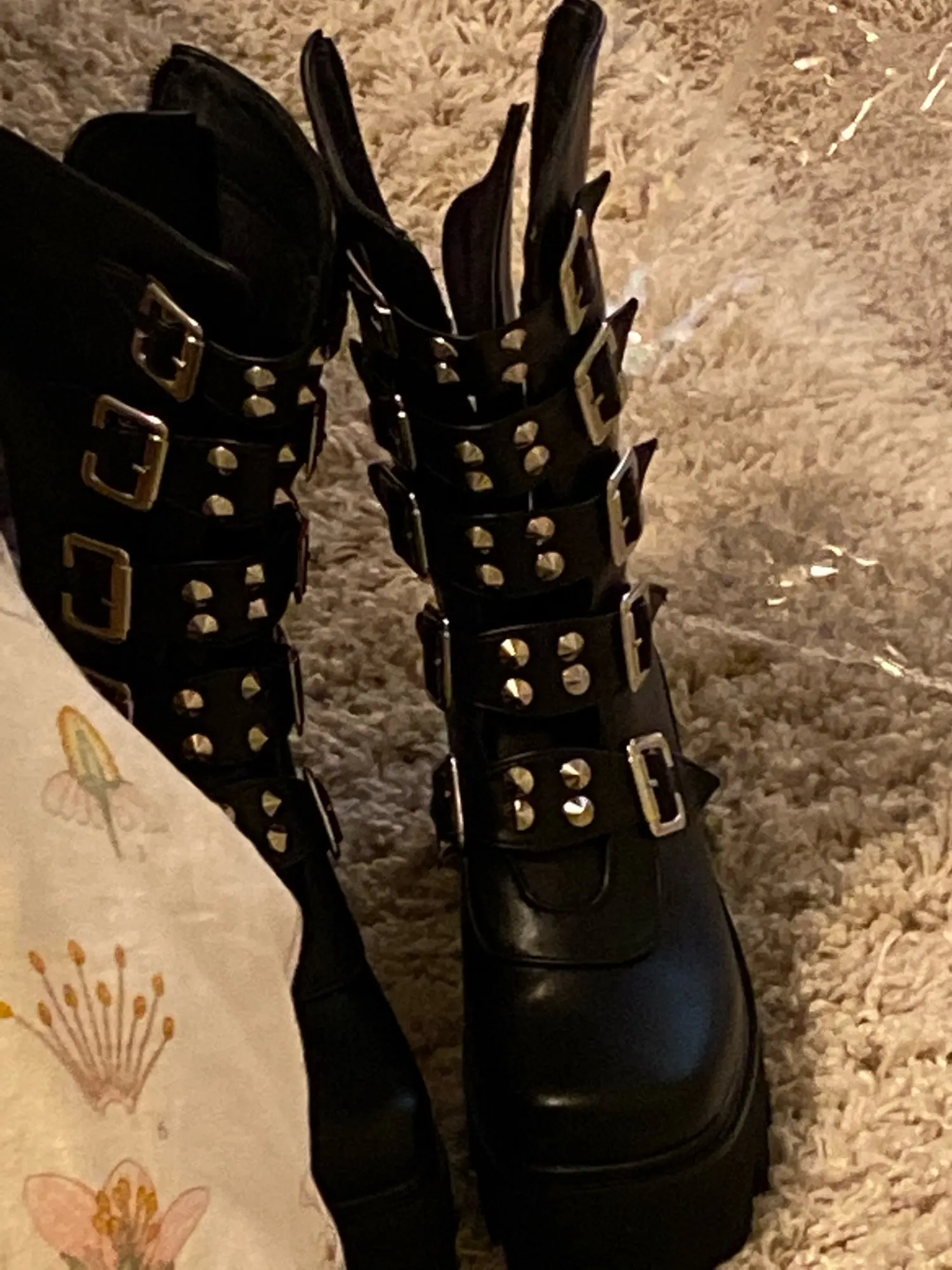 Продавец лапочка, очень быстро отвечает, помог с размером. У обуви есть запах, но быстро выветривается. Платформа кажется очень мягкой, но сапоги удобные, каблук вообще не чувствуется. Идут размер в размер. Ремни регулируются, можно затянуть пряжки сильнее или, наоборот, ослабить. Покупкой оч довольна