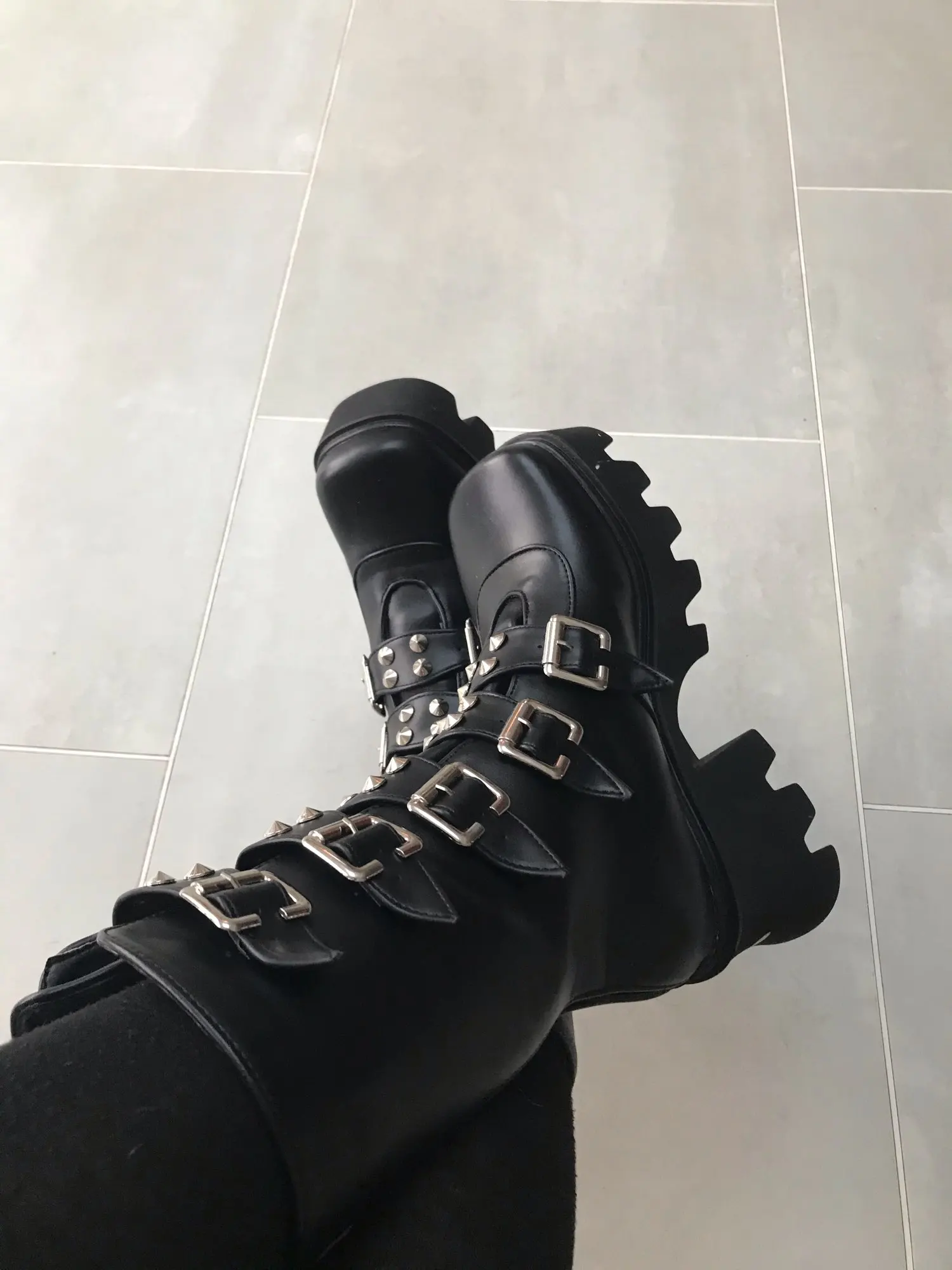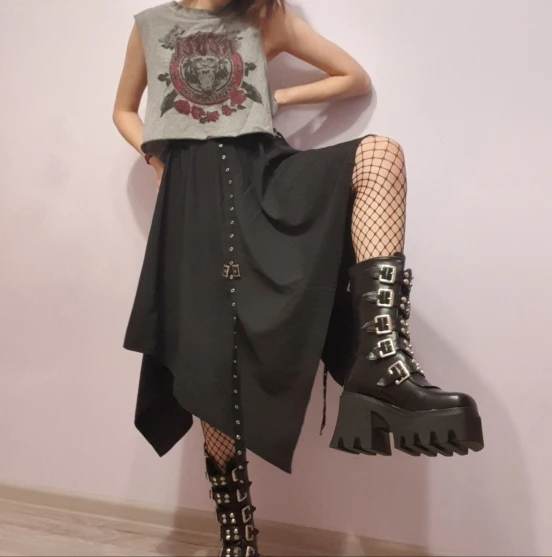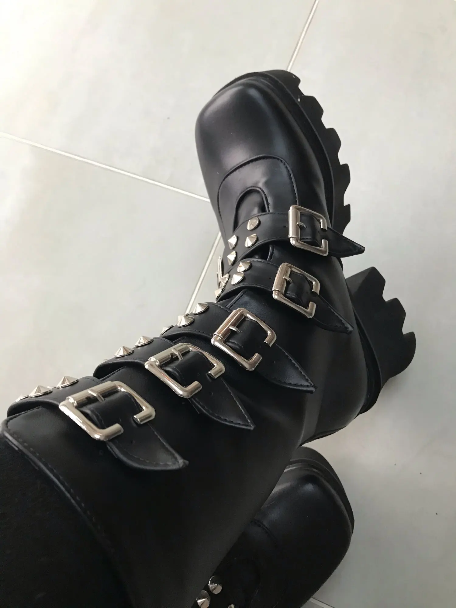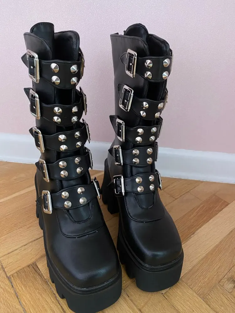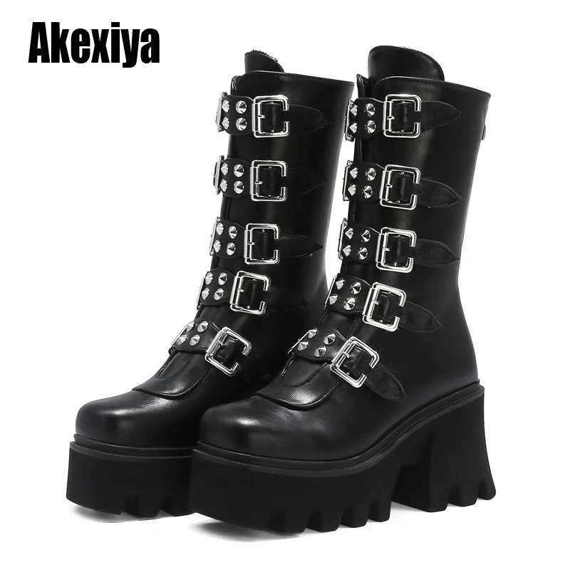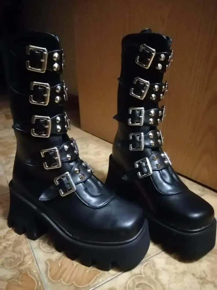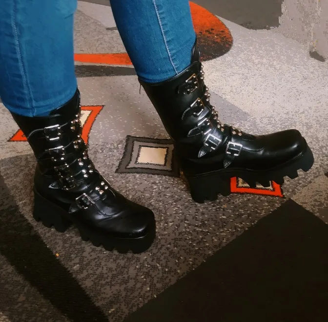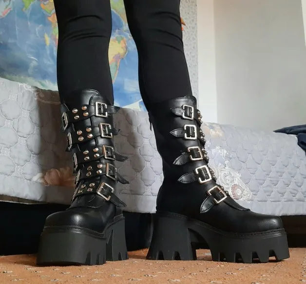 Ботинки женские зимние в готическом стиле, черные, на платформе, с пряжкой и ремешком, на молнии, на платформе, U542