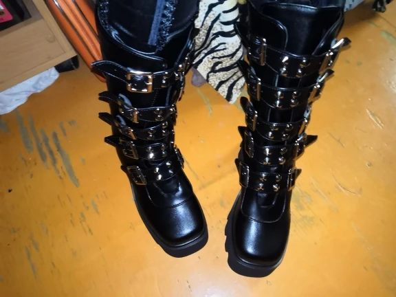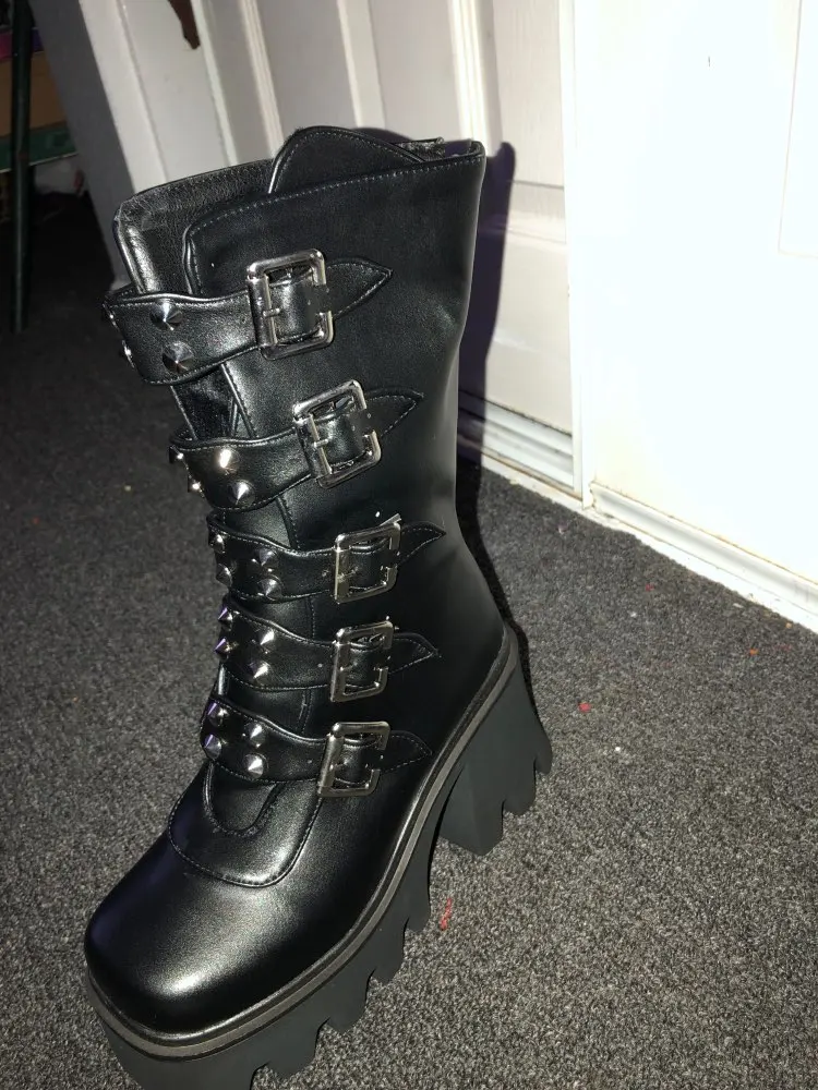 Really impressed with this product, true to size, not painful to walk in whatsoever, looks cool and it has this really soft, warm fabric on the inside, perfect for winter. Only negative is that the platform part of the boot gets streaks and scratches really easily, and I'm really bummed out about that but still happy about my purchase overall