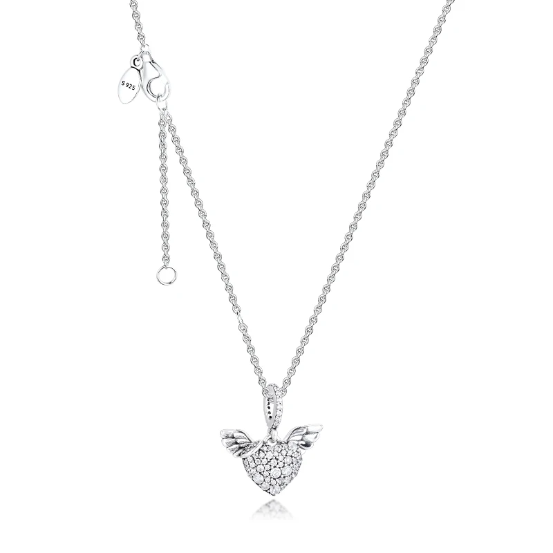 Ожерелье из стерлингового серебра с блестящим кулоном в форме сердца, обрамленным крыльями ангела, символизирует ангела-хранителя, который изящно защищает и направляет вас по жизни.