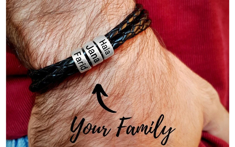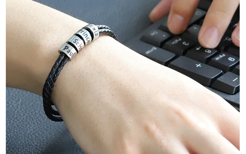 Браслет из натуральной кожи с индивидуальной гравировкой 1- 6 именами, браслет из бусин, браслет из нержавеющей стали, индивидуальный подарок для папы, мужские украшения