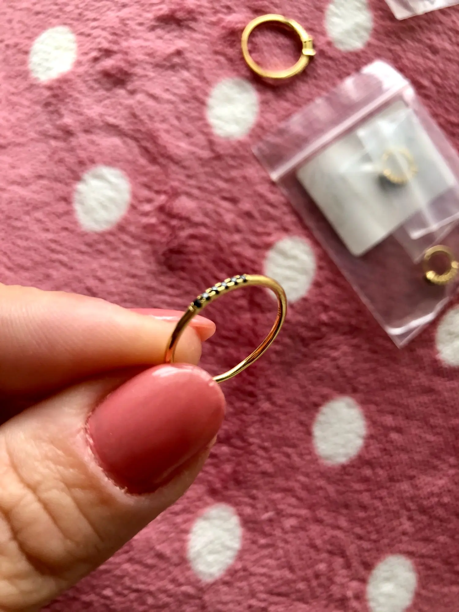 Он прибыл примерно через 3 недели в Испанию. У меня есть опыт покупки сережек от этого бренда, и они не уродливые (я не принимаю душ с ними, но если я ношу их каждый день), поэтому я решили купить кольца. Я ношу хорошо обернутую и защищенную коробку (например, серьги). Я попрошу больше страховки, 100% рекомендовано