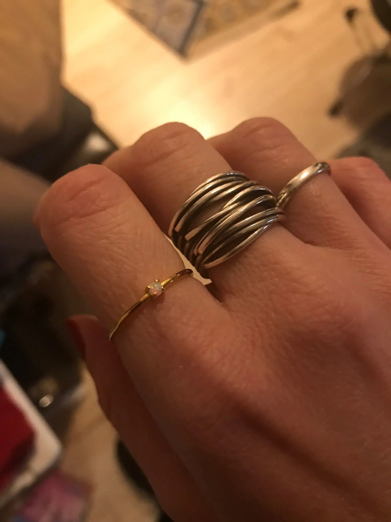 Нежные тоненькие кольца. Шикарно, когда несколько на одном пальце. Спасибо.