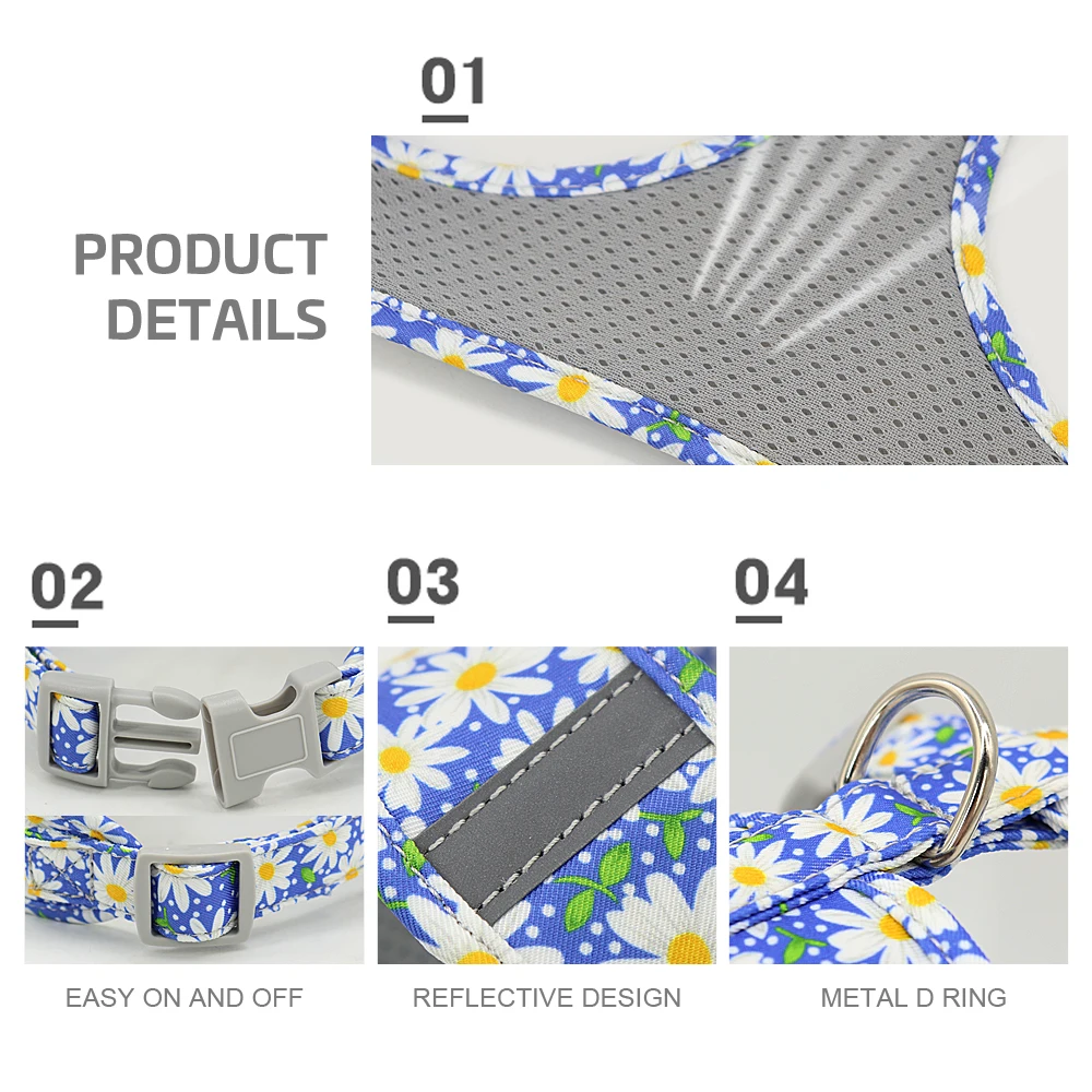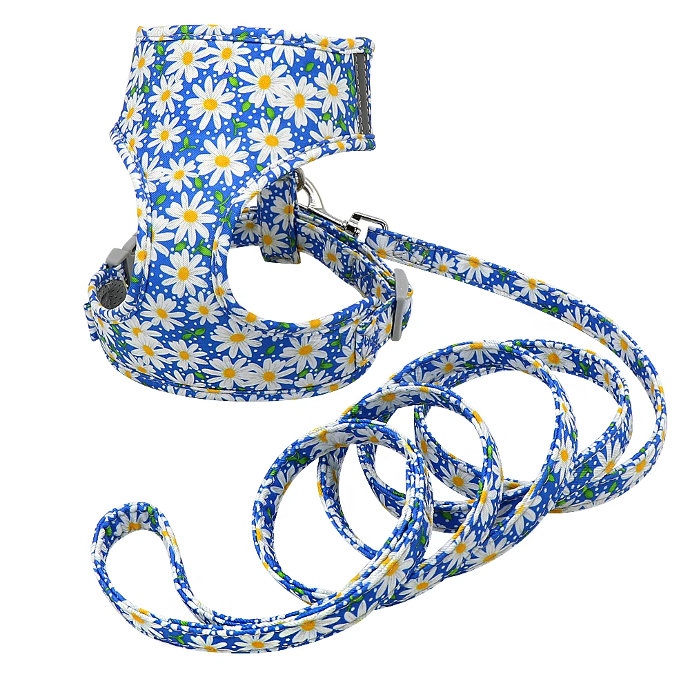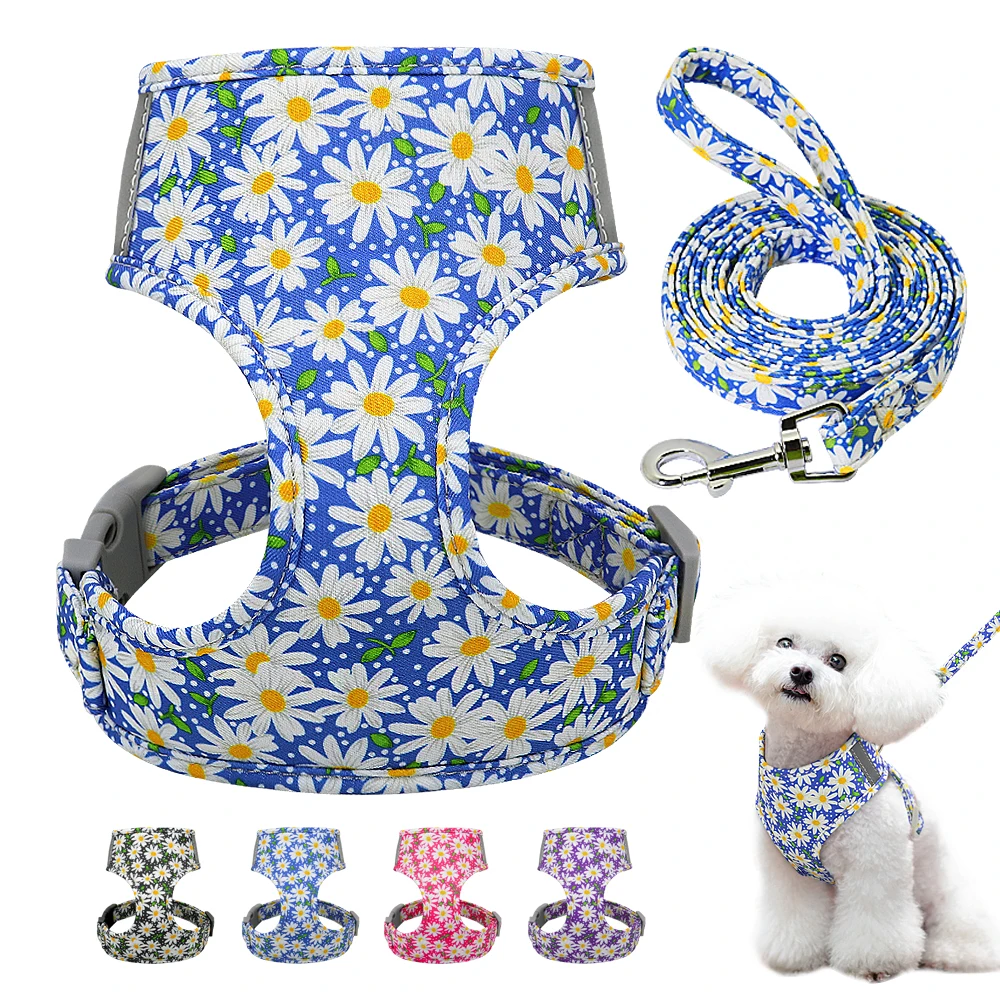 Жилетка с поводком для собак и кошек, нейлоновая шлейка с милым цветочным принтом для прогулок с маленькими и средними питомцами