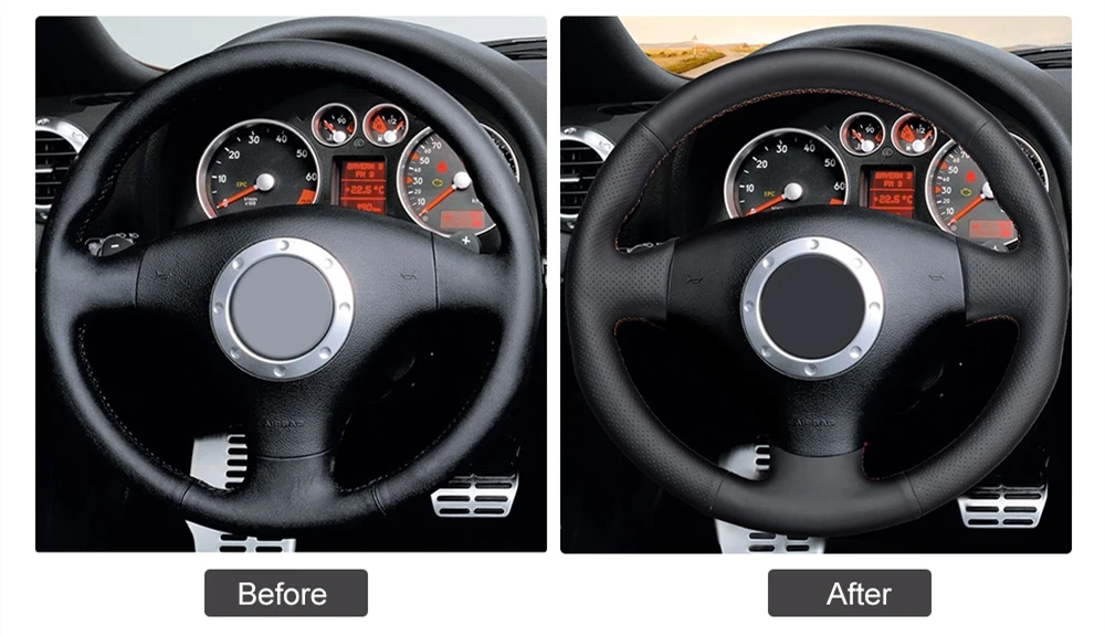 Черный чехол рулевого колеса автомобиля из искусственной кожи для Audi A2 8Z A3 8L Sportback A4 B6 Avant A6 C5 A8 D2 TT 8N S3 S4 RS 4 RS 6