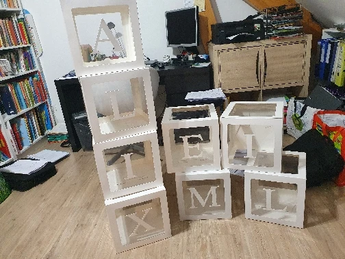 Я рад, что получил их до Рождества. Немного разочарован, потому что они картонные и не пластиковые, и было бы необходимо положить больше наклеек, чтобы наклеить буквы, потому что некоторые из них плохо сняты и непригодны для использования. В противном случае очень приятный эффект.