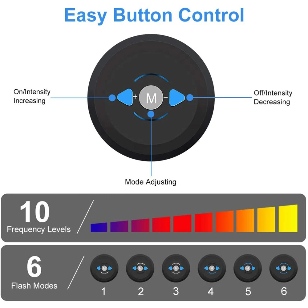 [Режимы и функции] 1. Режим 1 и 2 Сжигание жира в этих двух режимах мышцы интенсивно двигаются и быстро сжигают жир. 2. Режим 3 и 4 роста мышц сильное эластичное движение, глубокая стимуляция для поддержки роста мышц. 3. Режим 5 и 6 скульптура тела эти два режима ПРЕДСТАВЛЯЮТ СОБОЙ КОМПОЗИТНЫЕ режимы, которые помогают построить идеальную фигуру. Режим 1: когда горит белый светильник ниже Режим 2: когда горит белый светильник выше Режим 3: когда горят два белых индикатора Режим 4: когда горит синий светильник ниже Режим 5: когда горит синий светильник выше Режим 6: когда горят два синих индикатора