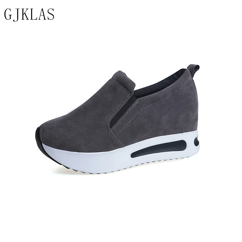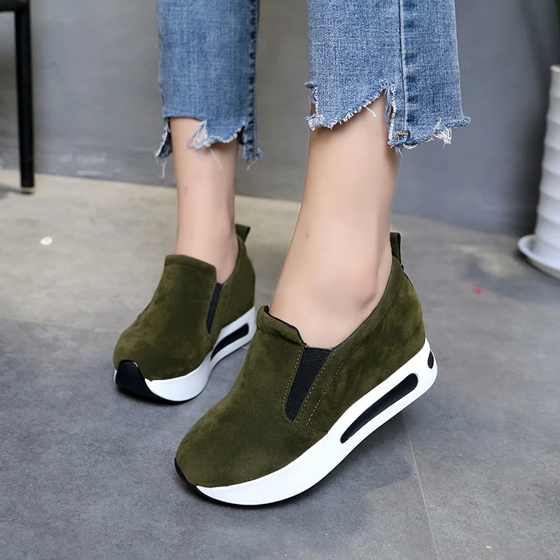 Кроссовки женские на платформе, замшевые, Вулканизированная подошва, лоферы, Повседневная модная обувь, черные, серые, зеленые