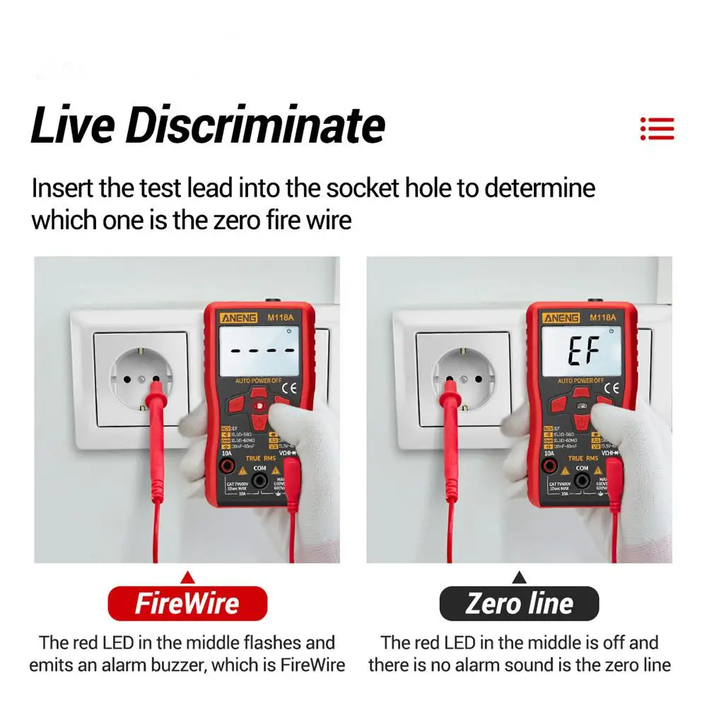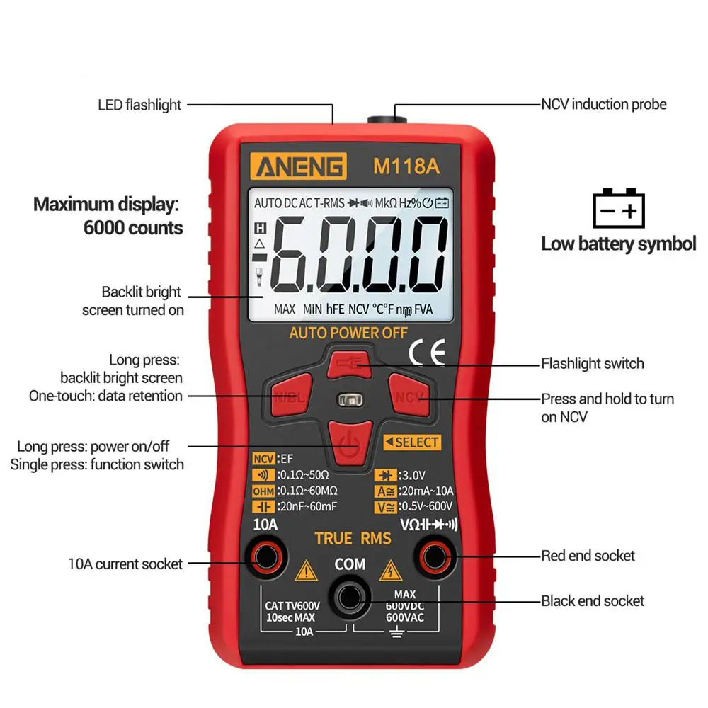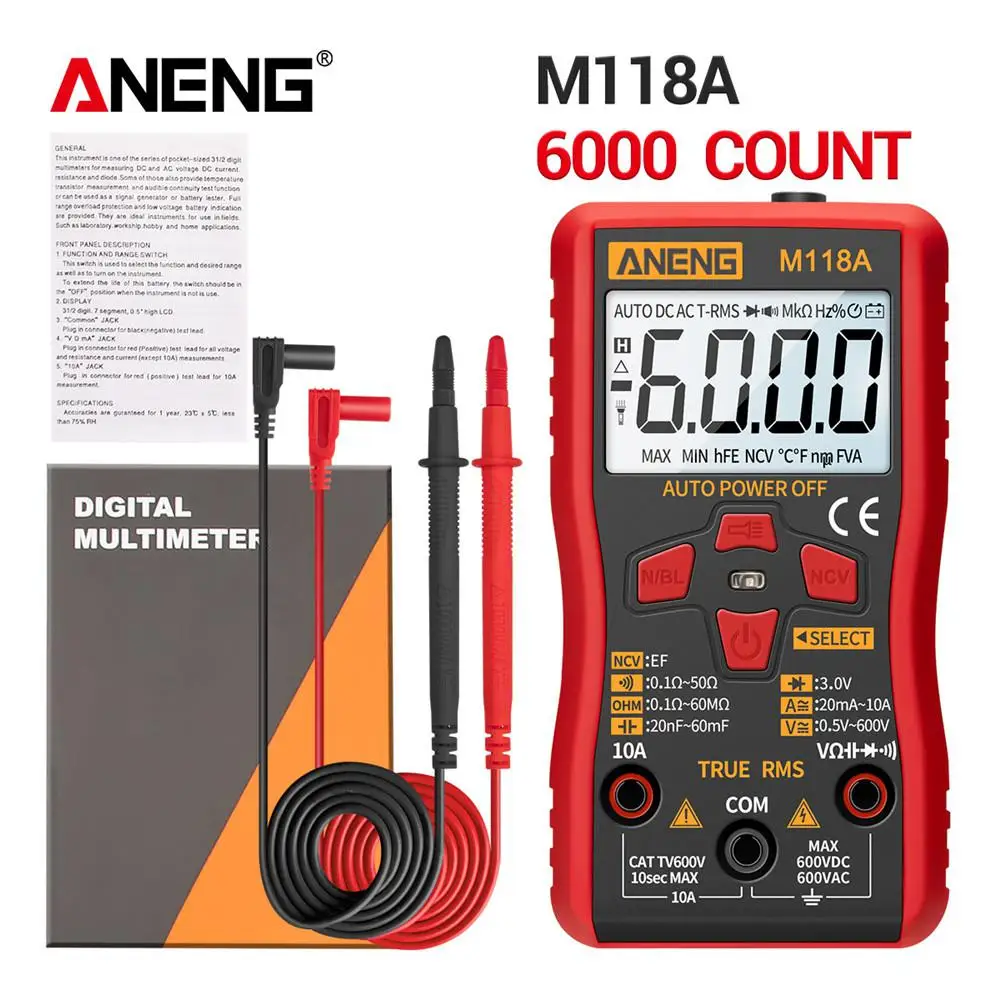 Цифровой мини-мультиметр M118A, тестер Auto Mmultimetro True Rms, измеритель транзистора с бесконтактным индикатором напряжения, Data Hold, 6000 отсчетов, фонарик