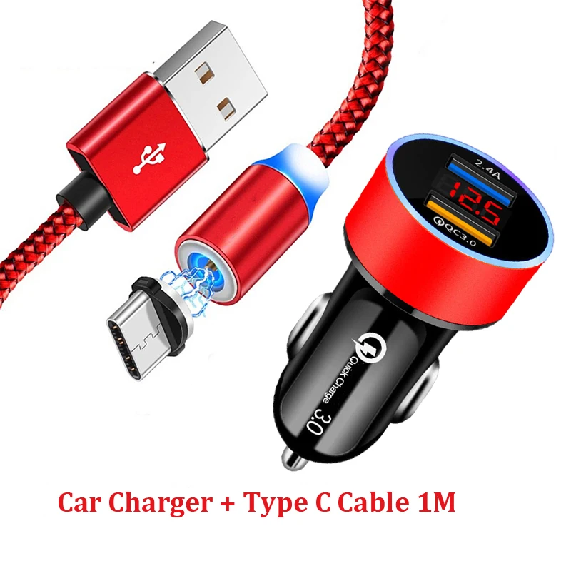 Автомобильное зарядное устройство с двумя usb-портами, магнитный кабель типа C, быстрое зарядное устройство для Samsung A20 A30 A40 A50 A70 A90 A10S A20S A10E A31 A51 A71