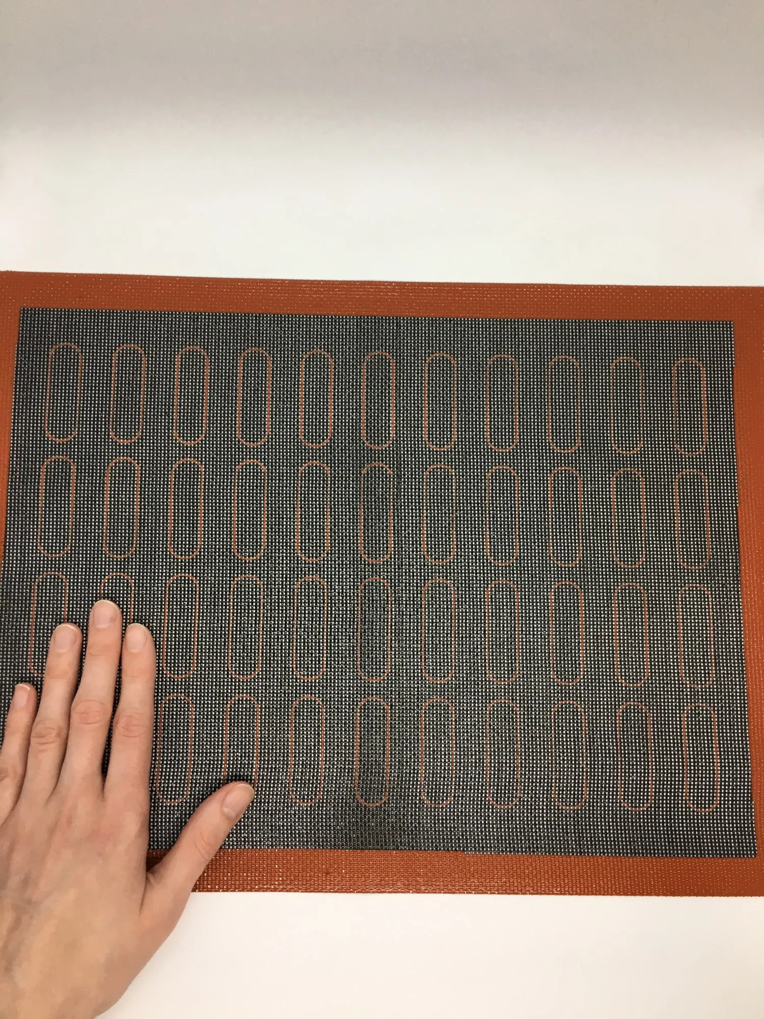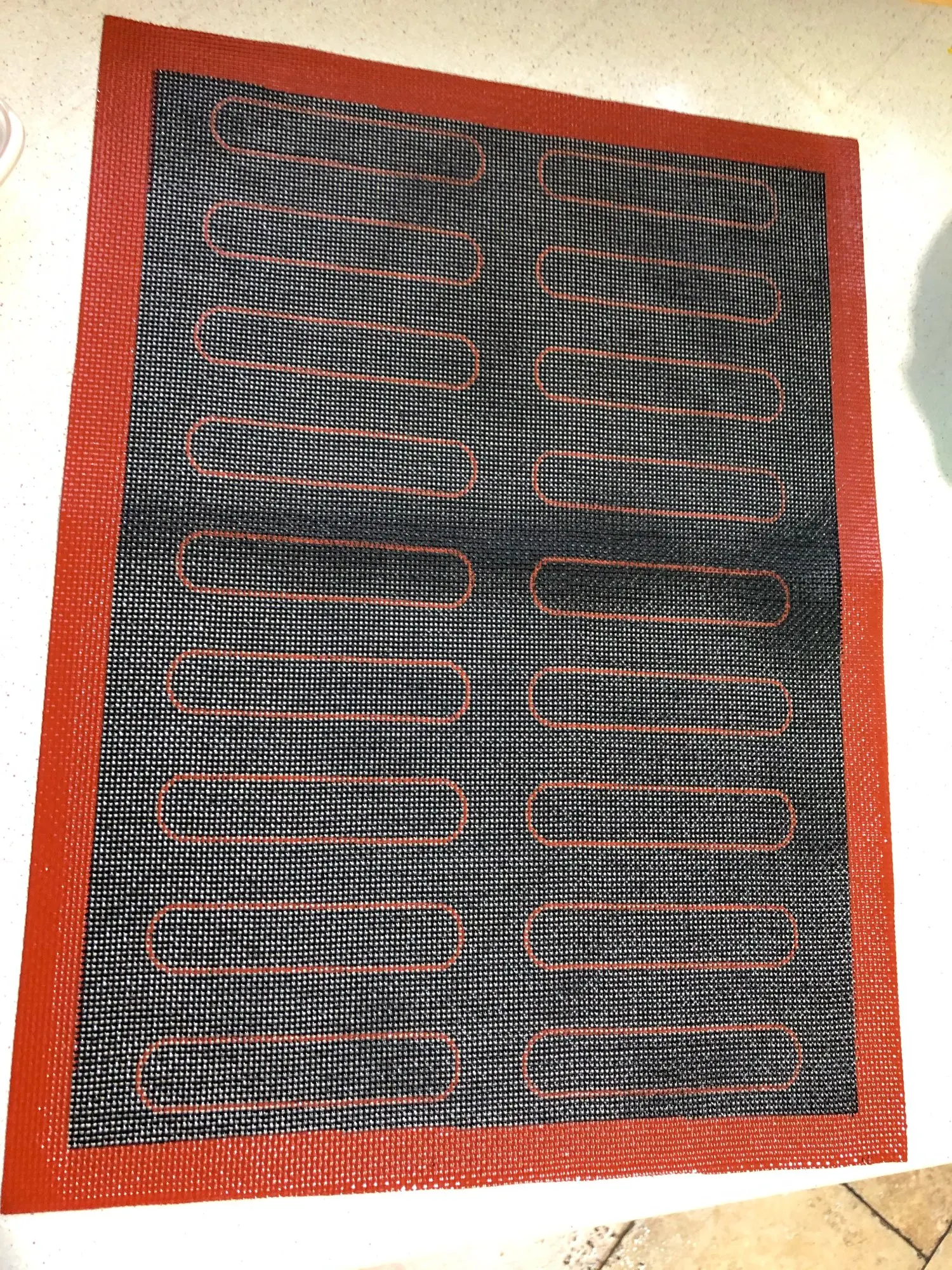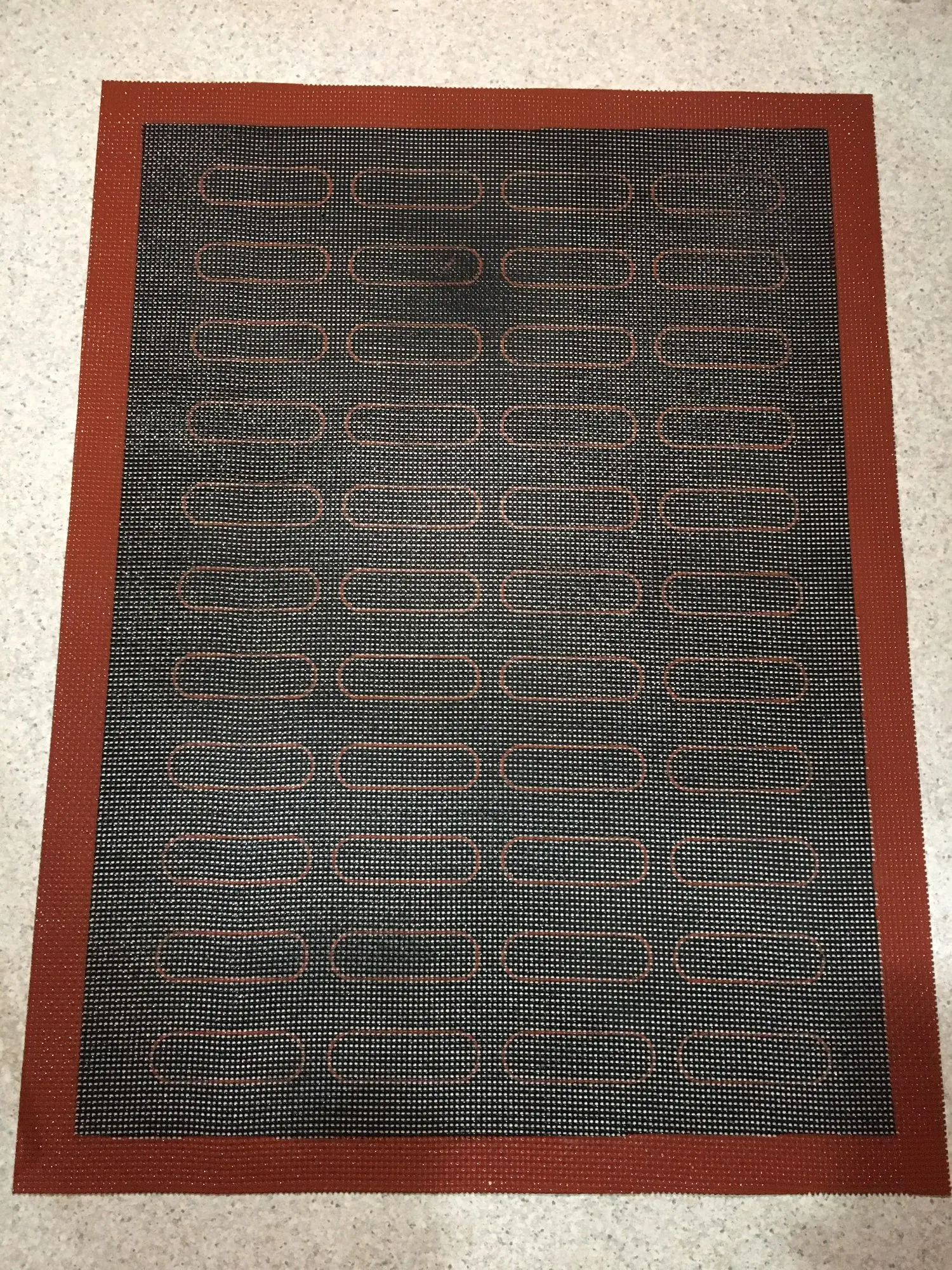 достаточно быстро пришла посылка.хорошо упакована. дефектов нет коврик вполне себе нормального размера, с двумя видами разметок для эклеров. сам по себе коврик не монолитный, с перфорацией.