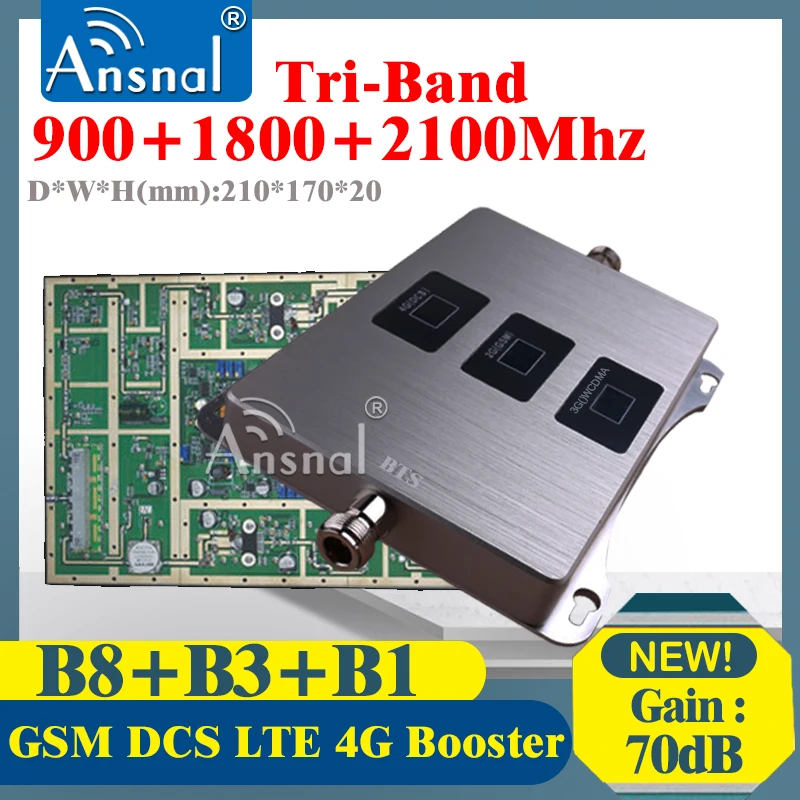 Новый модернизированный! Трехдиапазонный усилитель сигнала сотовой связи, 900, 1800, 2100 МГц, 2g, 3g, 4g, GSM, WCDMA, LTE