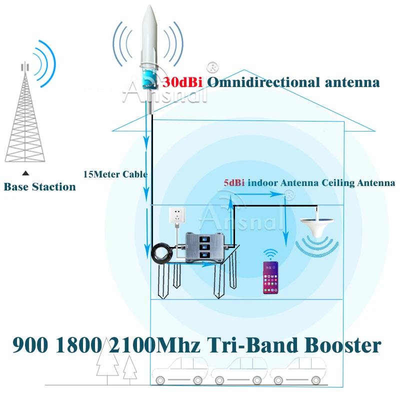 Frequency BandTri-Band 900 1800 2100Mhz 4G Mobile Signal Booster