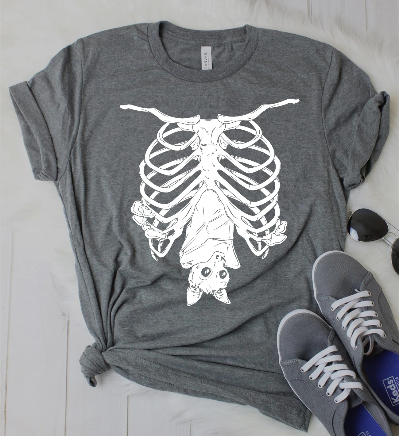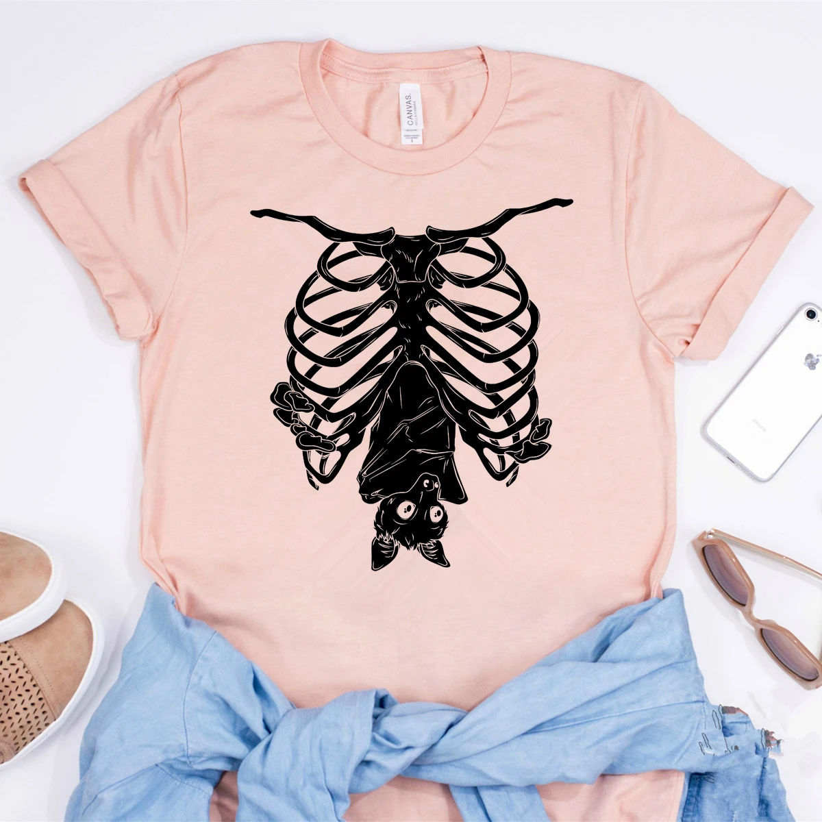 Женская футболка с рисунком черепа летучая мышь, в готическом стиле