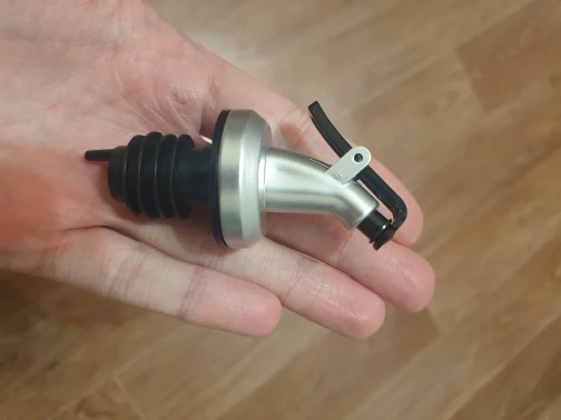 пластиковий дозатор на пляшку, чудовий. якщо не відкрутити йому голову, бо пластиковий, буде довго служити. класний механізм, після того, як закінчуєш наливати, не стікає жодної краплі ззовні.